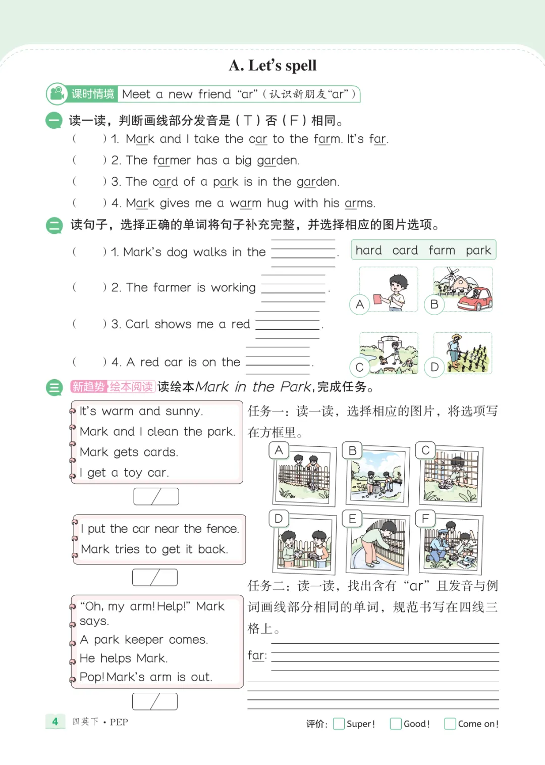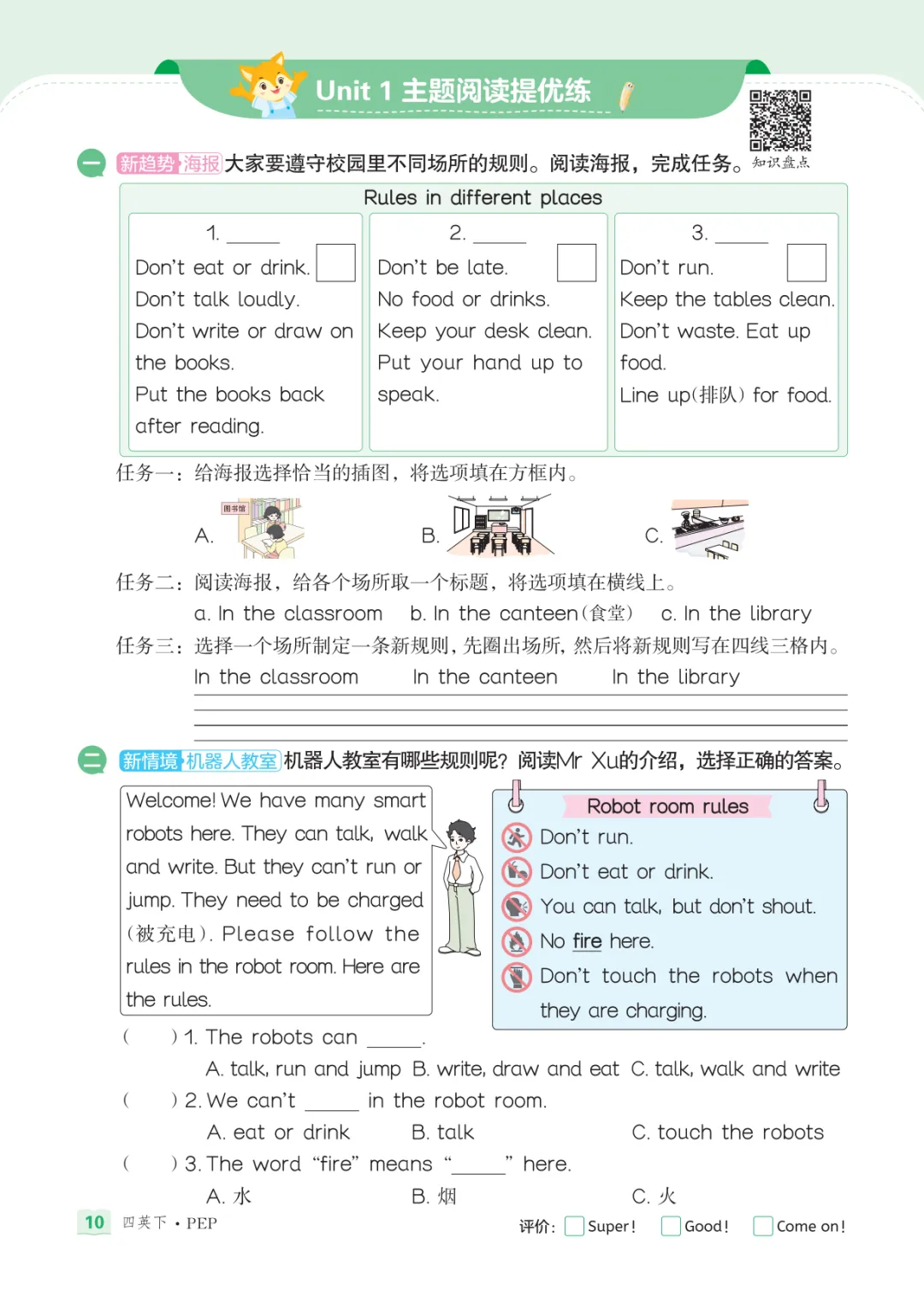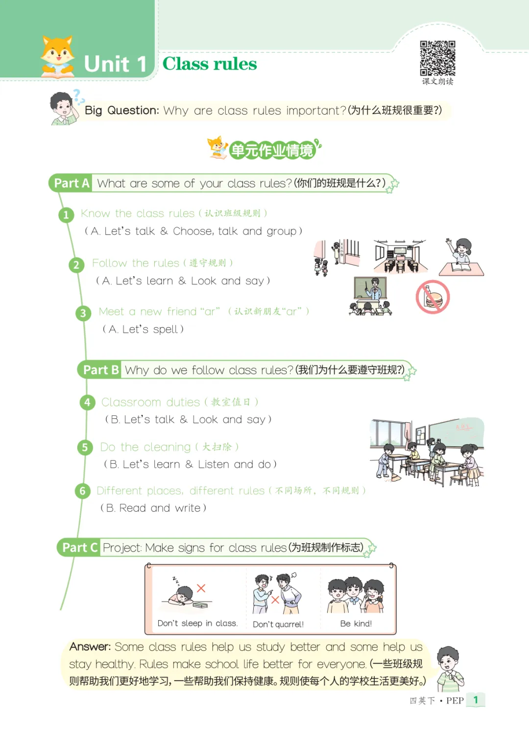 当前位置:首页>小学教材>PEP人教版新教材小学英语四下U1课时同步练