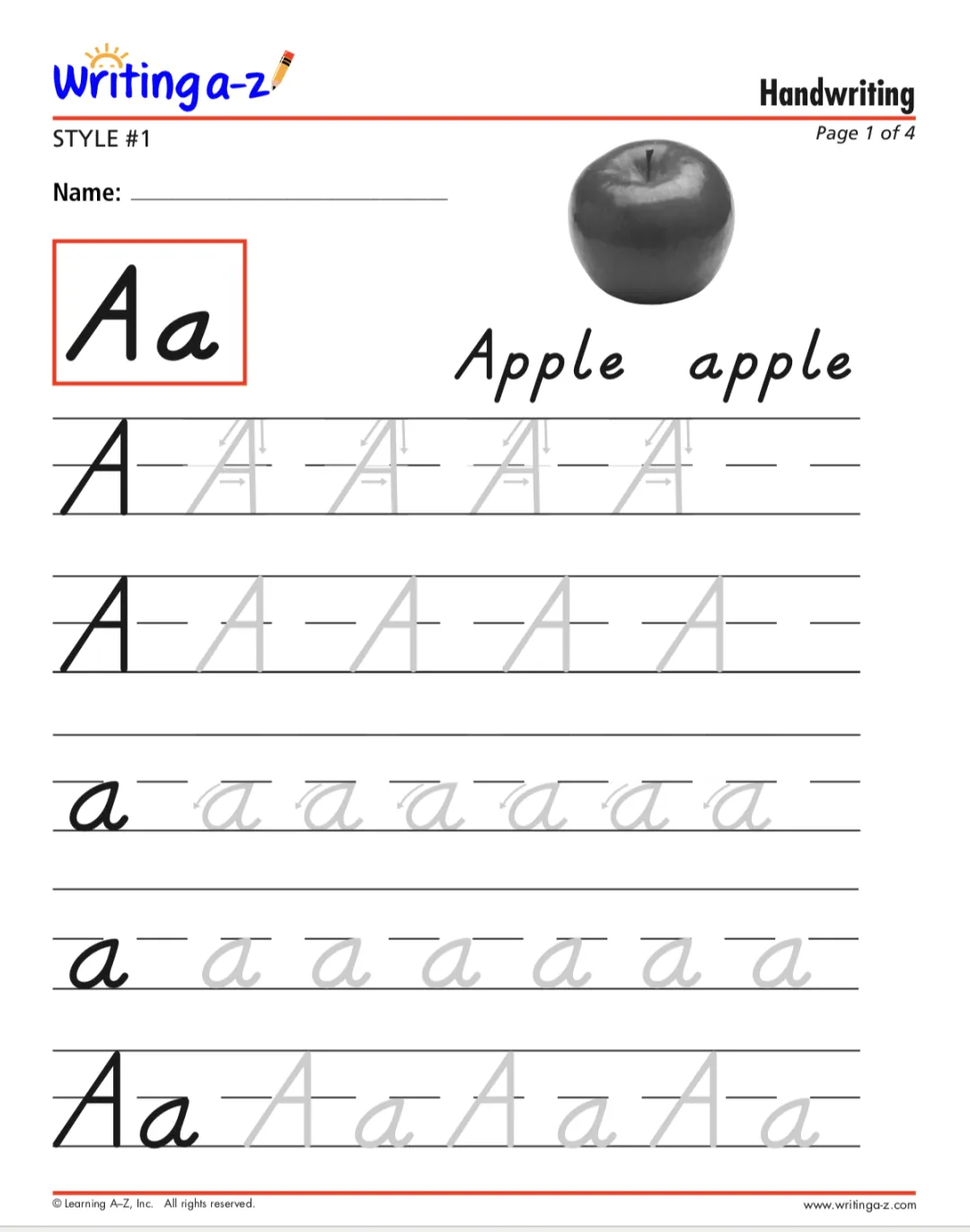 Emergent是写作的启蒙阶段,主要学习字母,高频词,句子结构等基本内容,适合美国PreK-K阶段的孩子,同样也适合国内启蒙阶段的孩子。里面都是可以下载的pdf文件,内容很多比如可以打印的字母描红,让孩子练习字母书写: