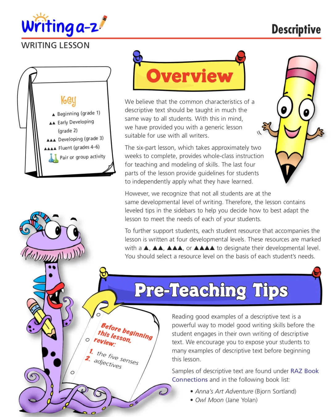 Writing A-Z适用年级范围为PreK至G6。在Writing A-Z里明确定义了英文写作相关的课程首先基于以下5个阶段来设计: