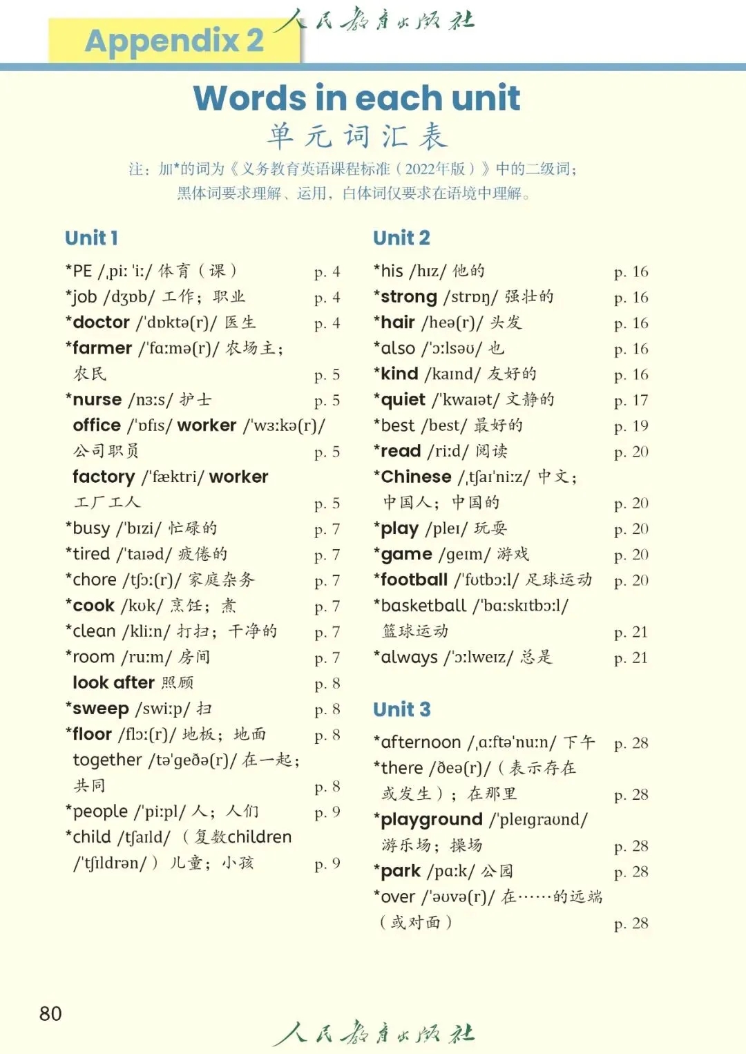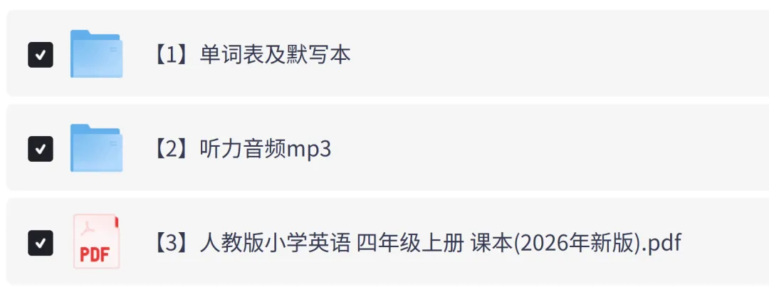 人教版初中英语四年级上册电子课本教材+单词表+单词默写表+听力音频完整版(2026年新版教材),可下载打印!