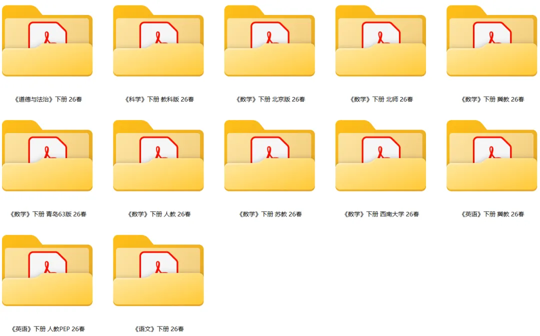 2026春最新版!全新二、三、四新改版教材,小学1~6年级下册,道德与法治、语文、数学、英语、科学等各学科,人教版、北师版、苏教版、冀教版、教科版等各版本,官方2026春正式版电子课本。网盘下载链接只分享12个不同版本学科,其他学科官方正式版电子课本,请点【收藏】官方最新最全电子课本(全学段),免费下载自行下载。