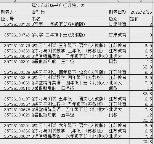 2026春教辅材料价格表