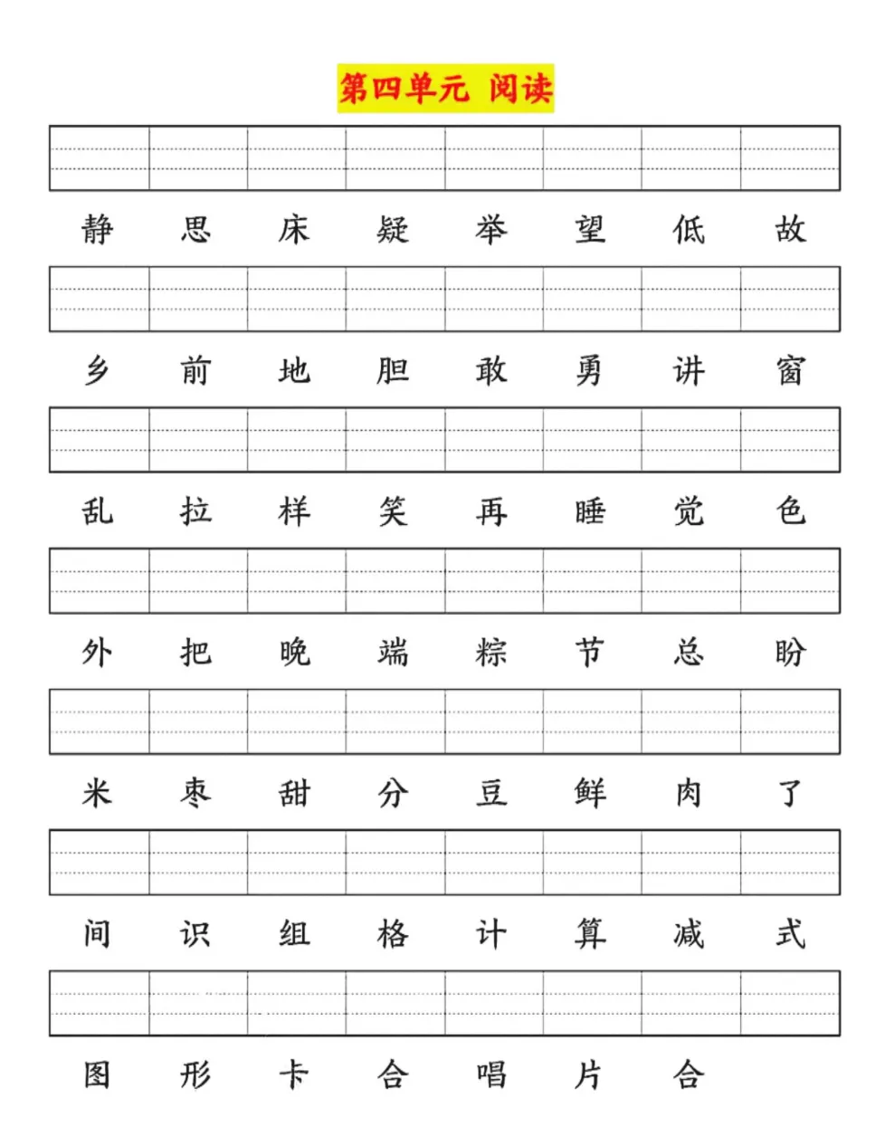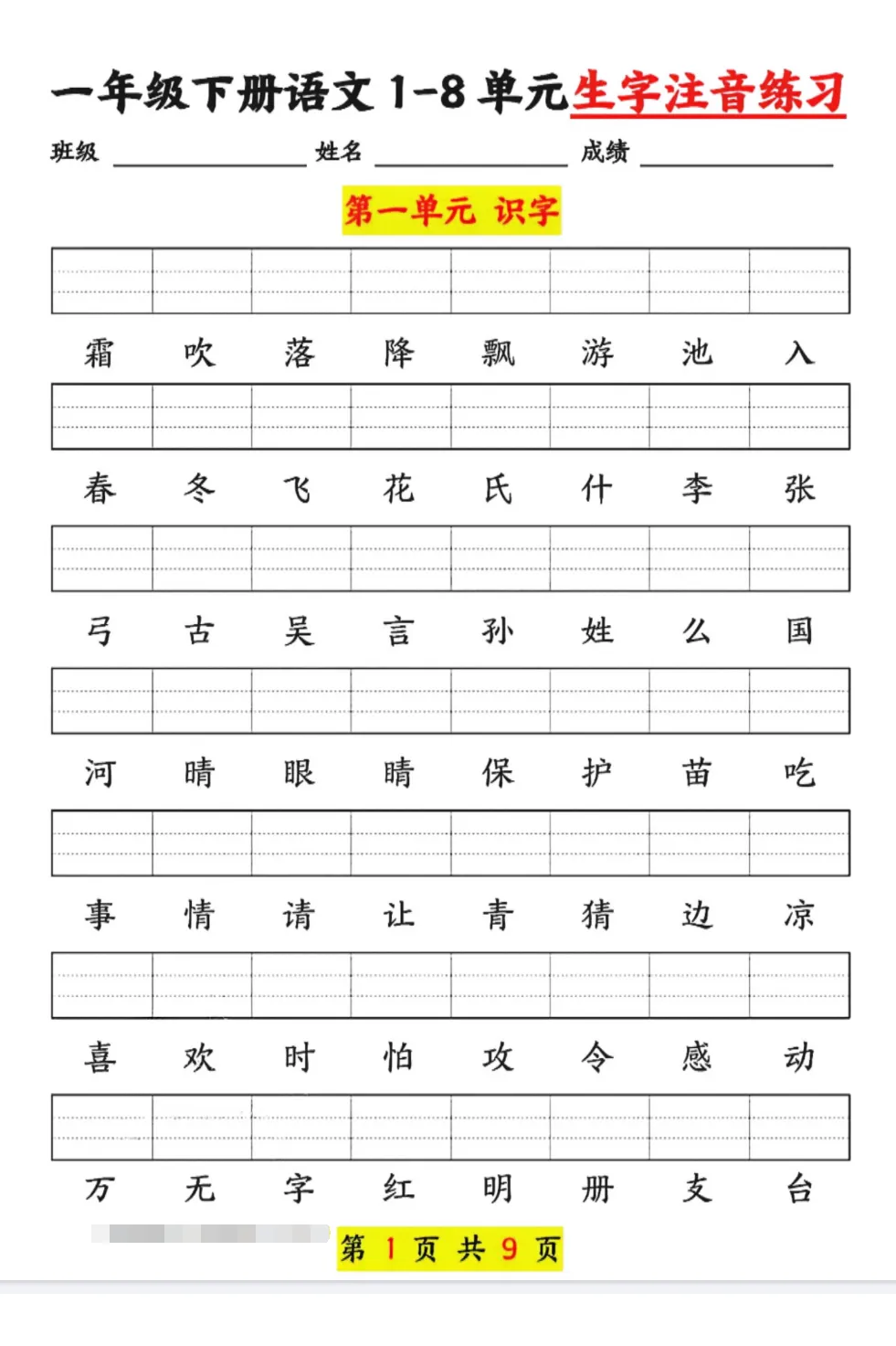 2026年春 人教版 新教材小学一年级语文下册课后识字表+写字表+词语表注音 PDF电子版,可打印!