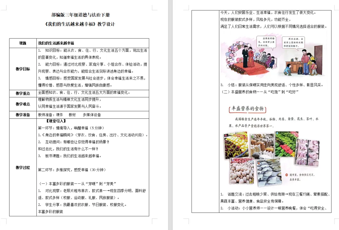 【道德与法治教案课件】新教材部编版小学道德与法治三年级下册表格配套教案课件(含反思)第1课《我们的生活越来越幸福》