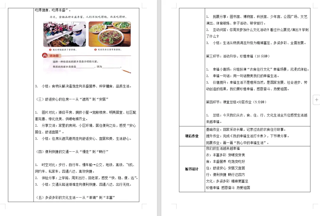 【道德与法治教案课件】新教材部编版小学道德与法治三年级下册核心素养表格配套教案课件(含反思)第1课《我们的生活越来越幸福》