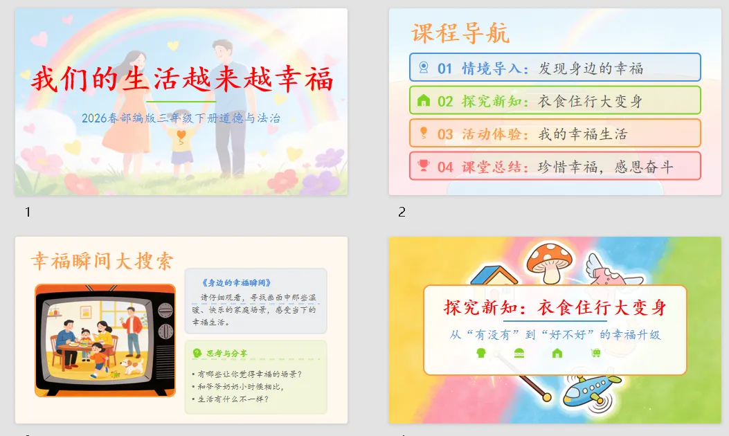 【道德与法治教案课件】新教材部编版小学道德与法治三年级下册文本配套教案课件第1课《我们的生活越来越幸福》