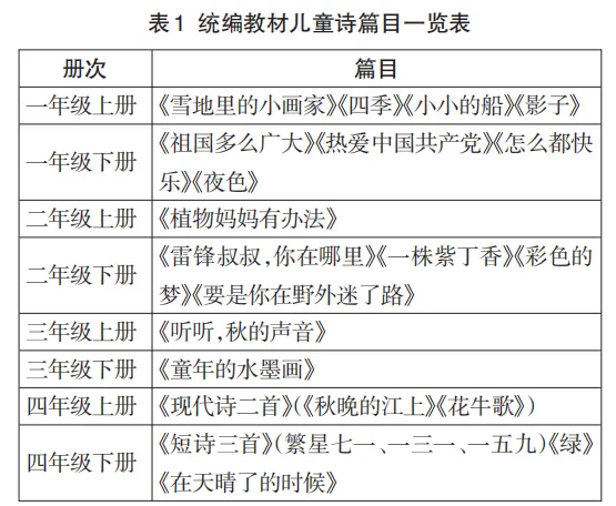 统编小学语文教材一至六年级共选编22篇儿童诗,详见表1。
