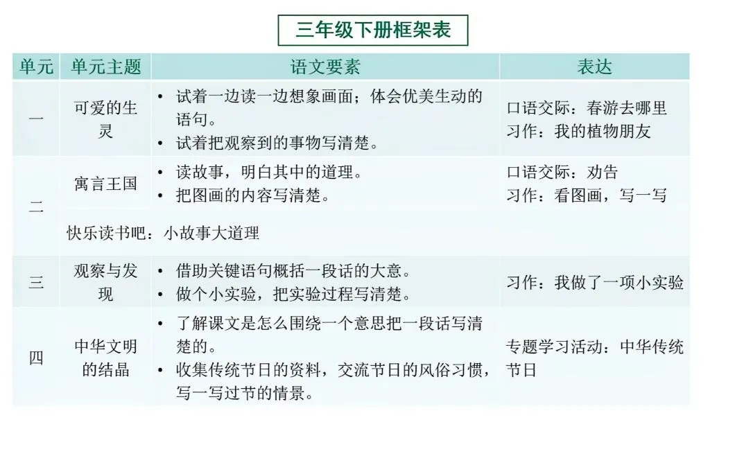 统编小学语文三年级下册教材介绍
