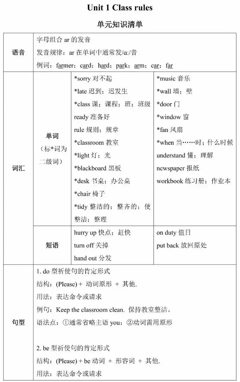Unit 1 Class rules单元知识清单