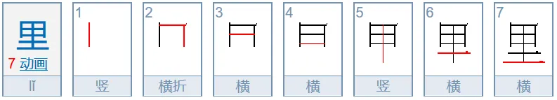 里(理、童)笔顺:先写甲,后写二