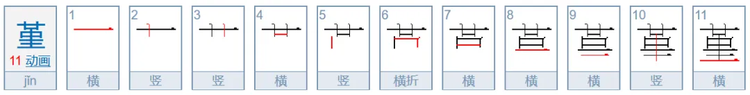 堇jǐn(谨、槿)末二笔为竖、横