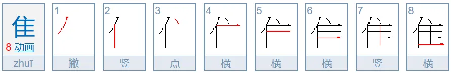 隹zhuī(谁、难)末二笔为竖、横