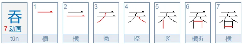 天—吞、蚕、忝tiǎn(添、舔)、奏(凑)