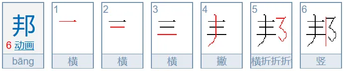 邦(帮、梆、绑)的第四笔是撇