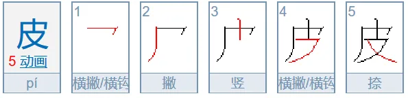 第10类:皮的前三笔笔顺