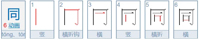 同、冈、网、罔:第一笔是竖