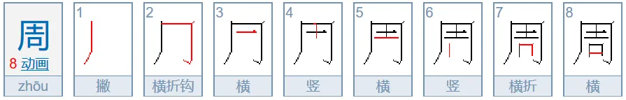 周、用:第一笔是撇