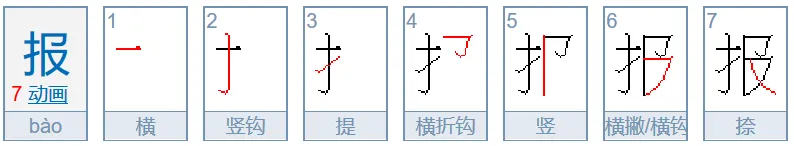 报、服—右旁前两笔笔顺:横折钩、竖