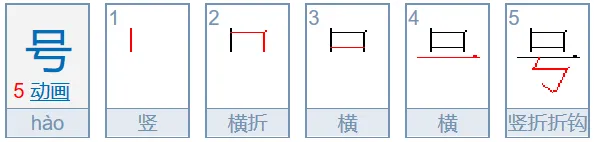 号、考、污—末笔向上不出头。末两笔笔顺:横、竖折折钩