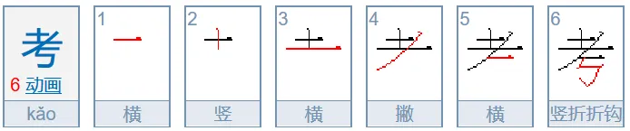“考”字下部不能如阿拉伯数字“5”