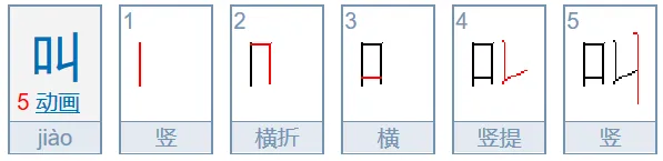 叫、纠的右旁——竖提与竖不交叉,不能写如阿拉伯数字“4”