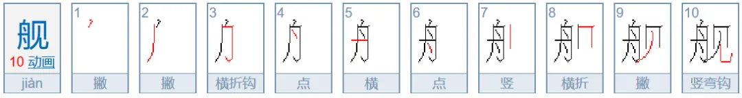 舟(舰、般、航)—第五笔横,向右不出头