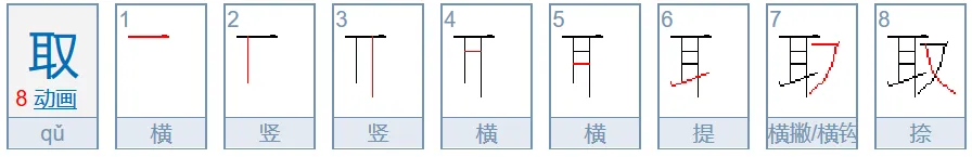 注意:耳(取、职、联)—做左偏旁时末笔改提,可出头