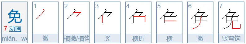 第六笔都是一撇通下来—免(兔、挽、勉)