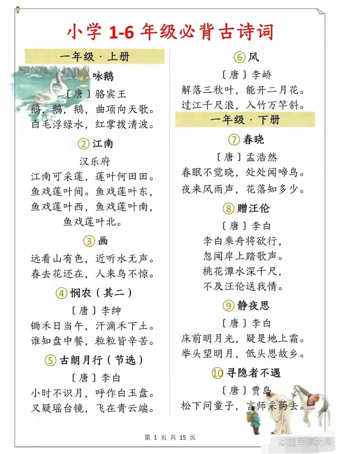 小学1-6年级古诗整理