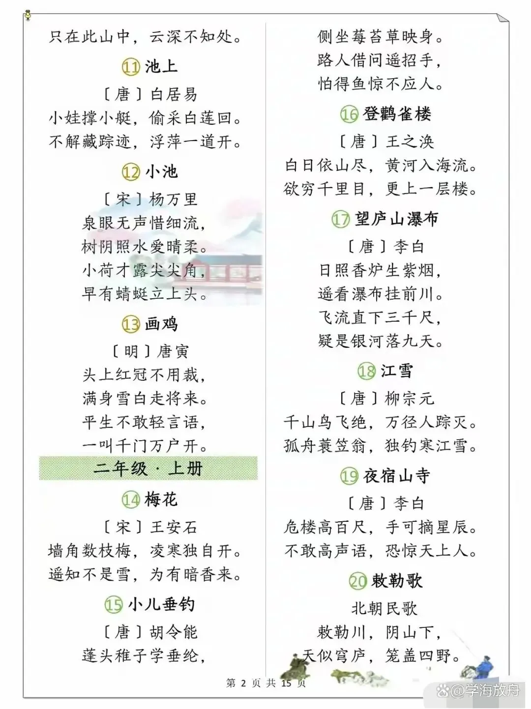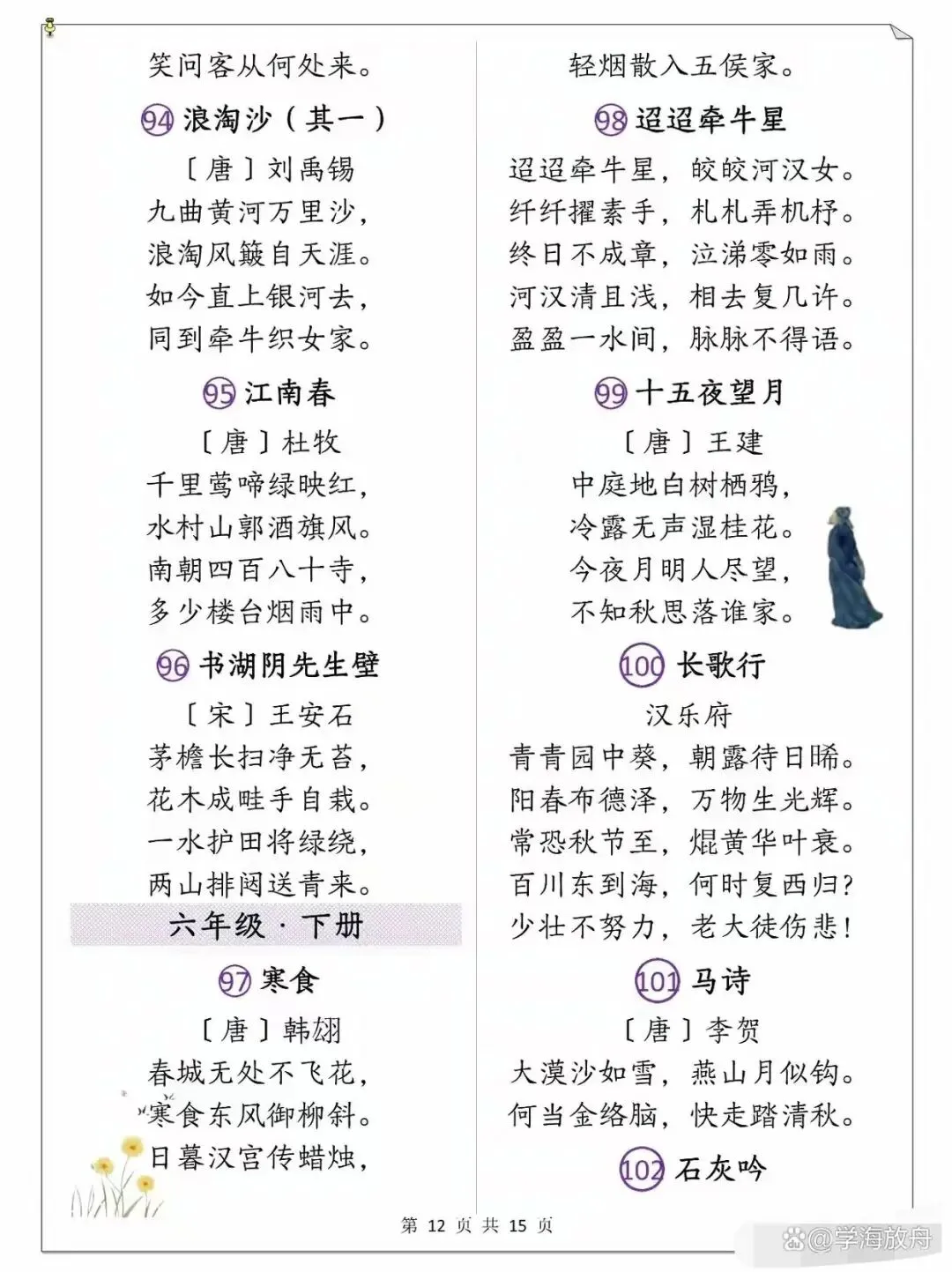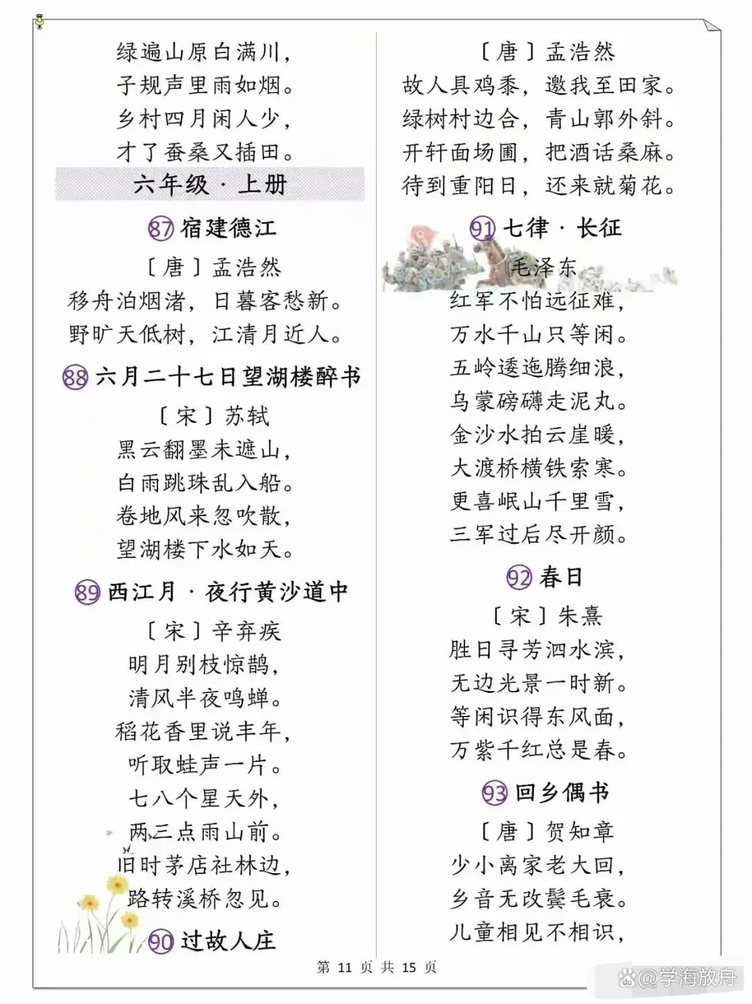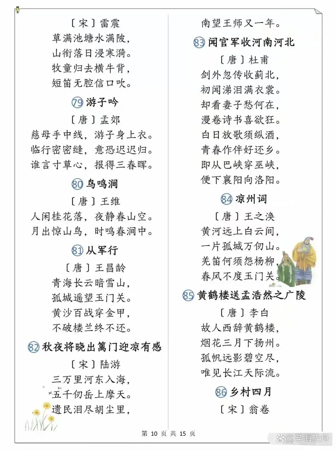 >小学1-6年级语文课本古诗整理
