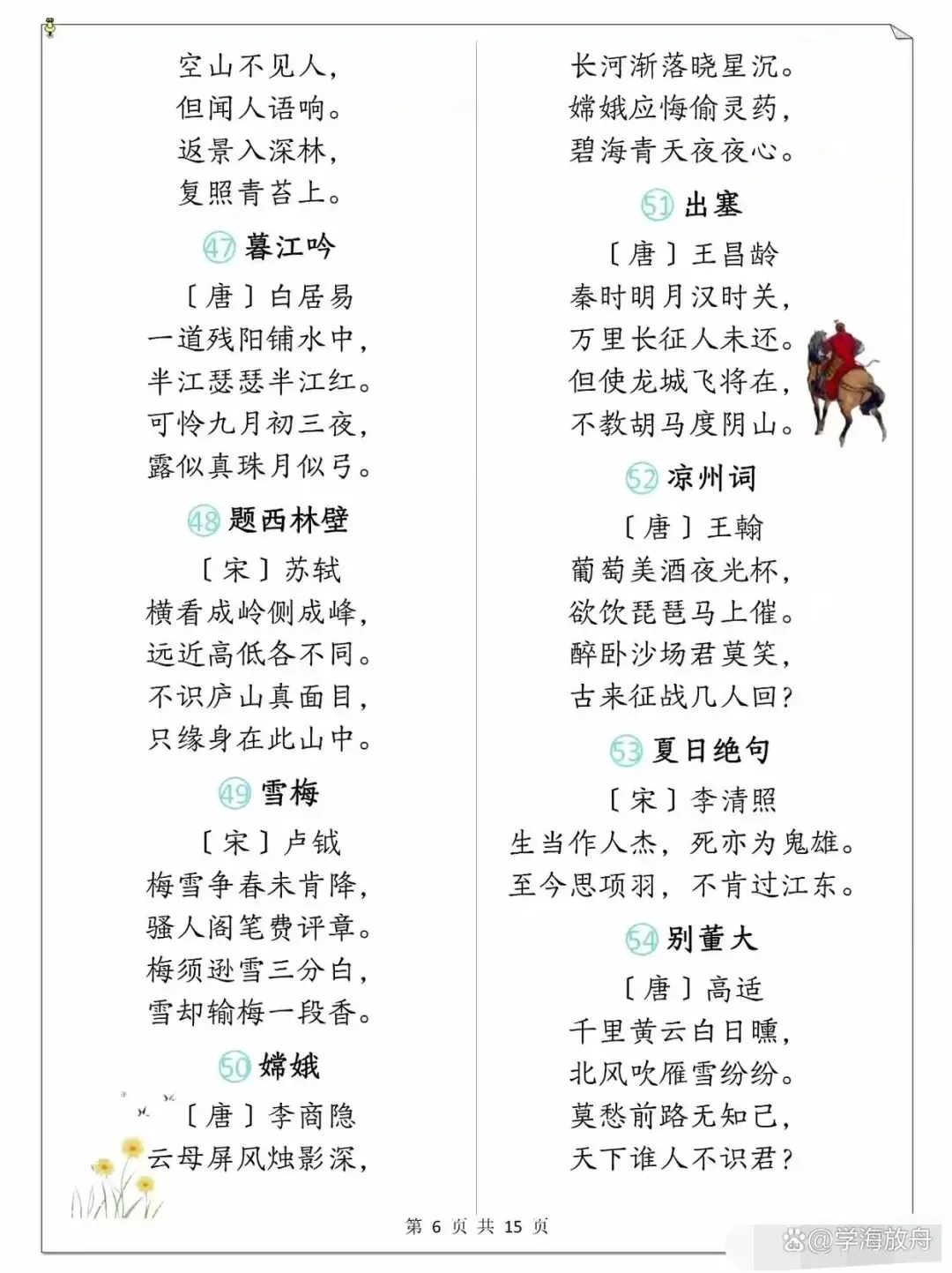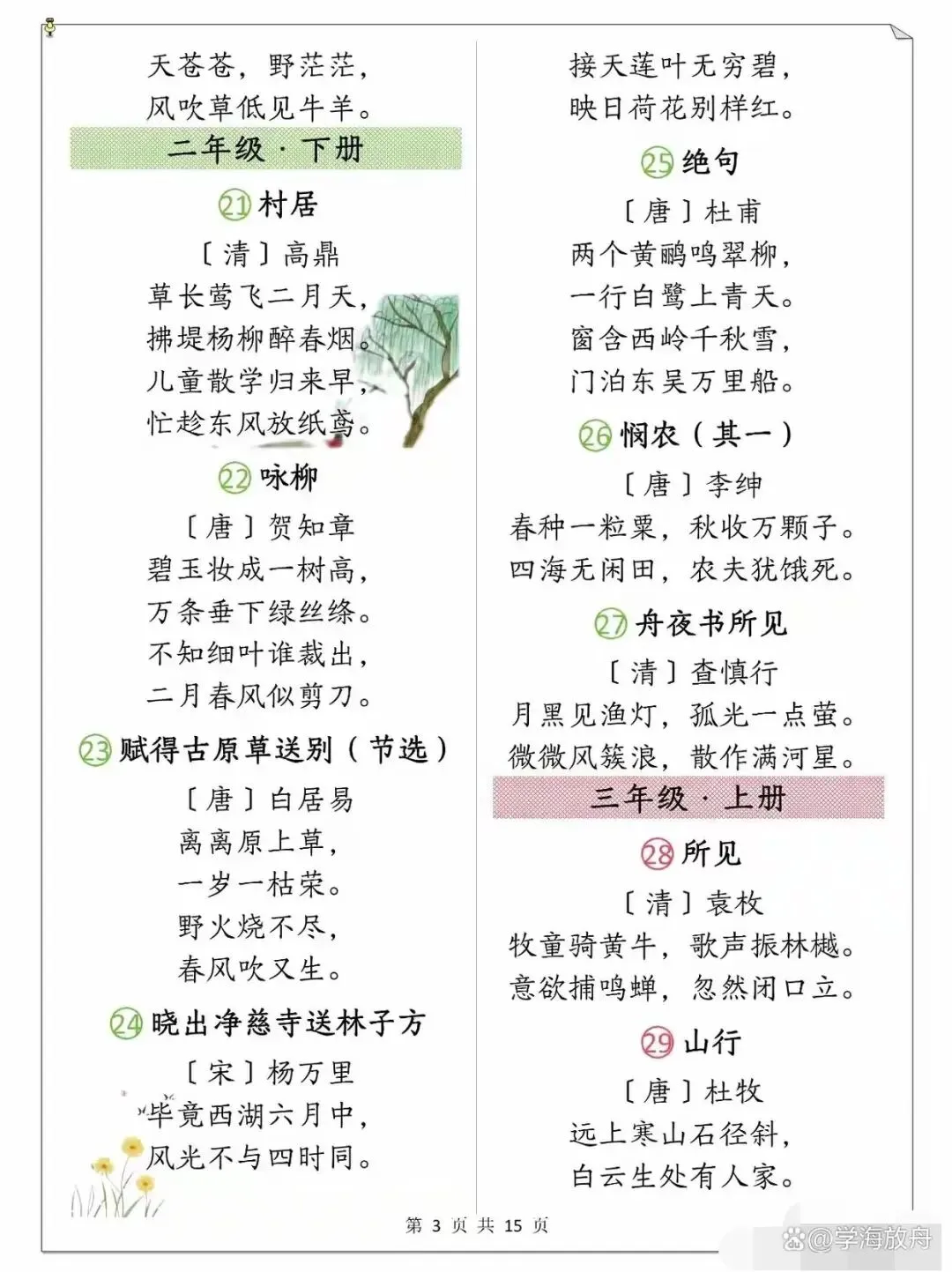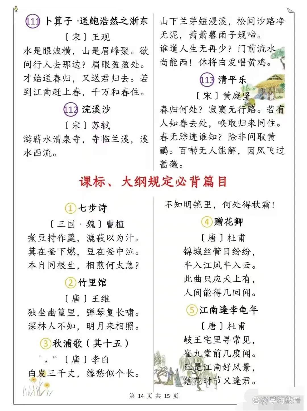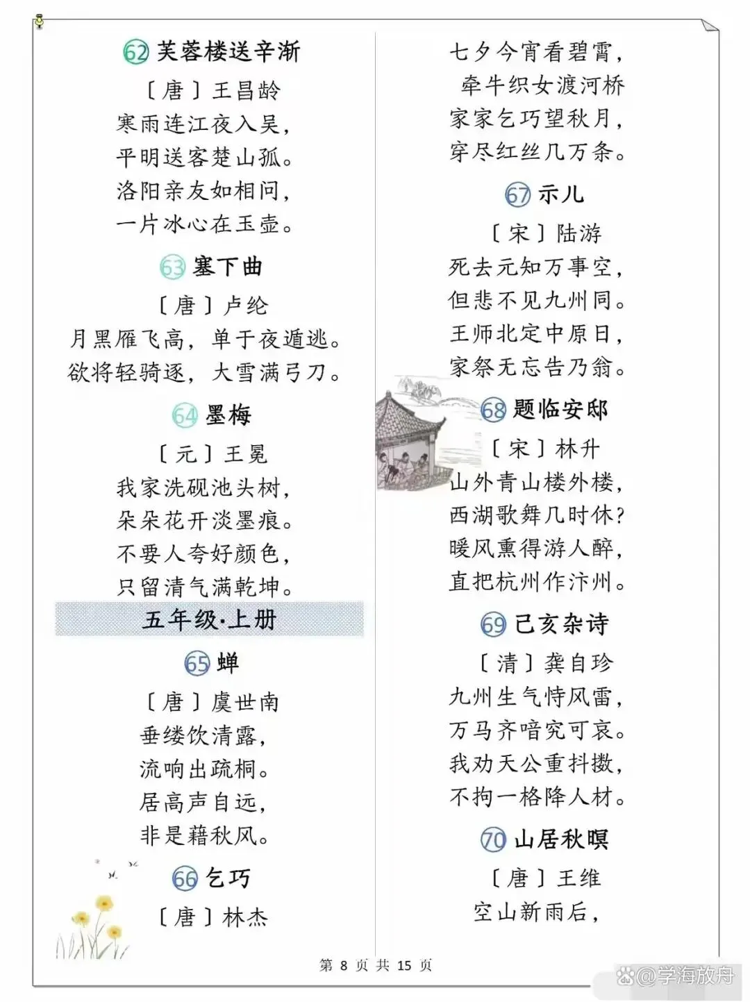 >小学1-6年级语文课本古诗整理