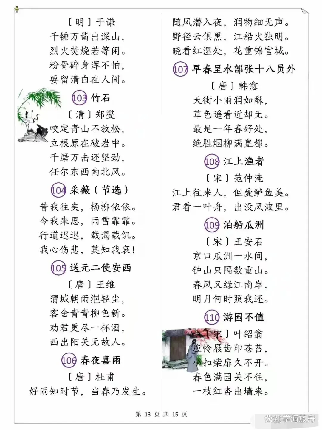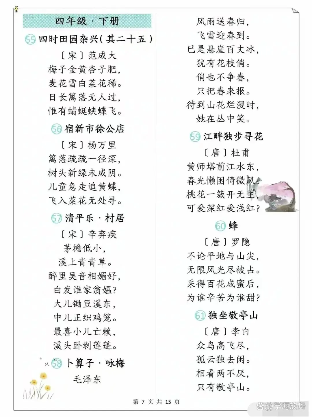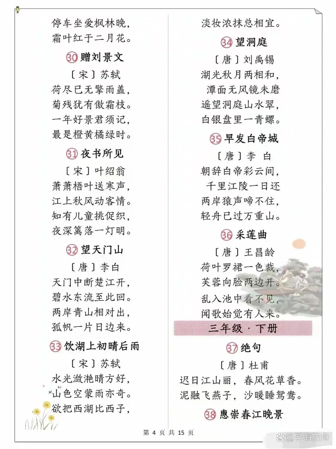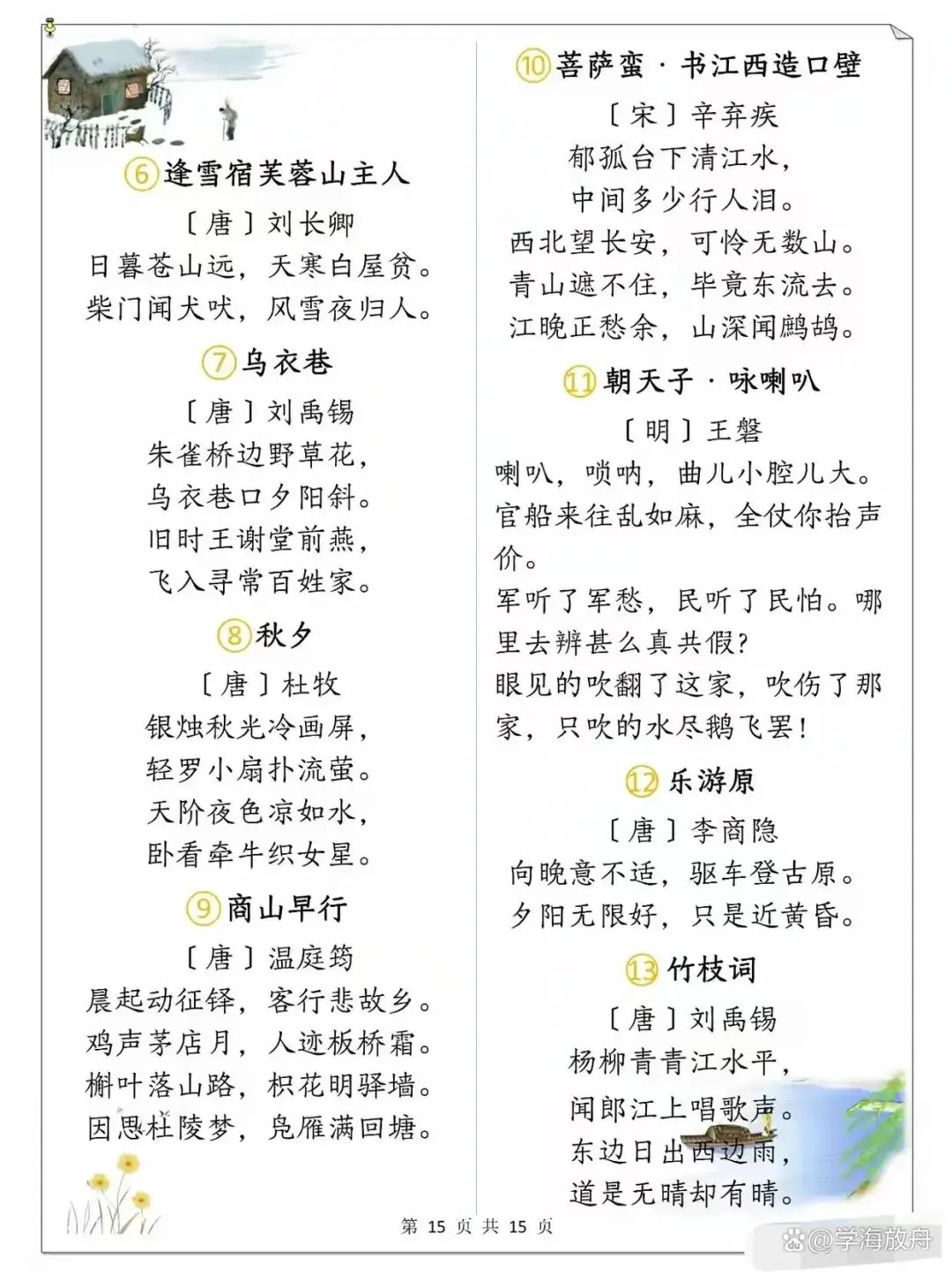 >小学1-6年级语文课本古诗整理