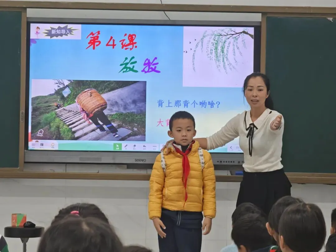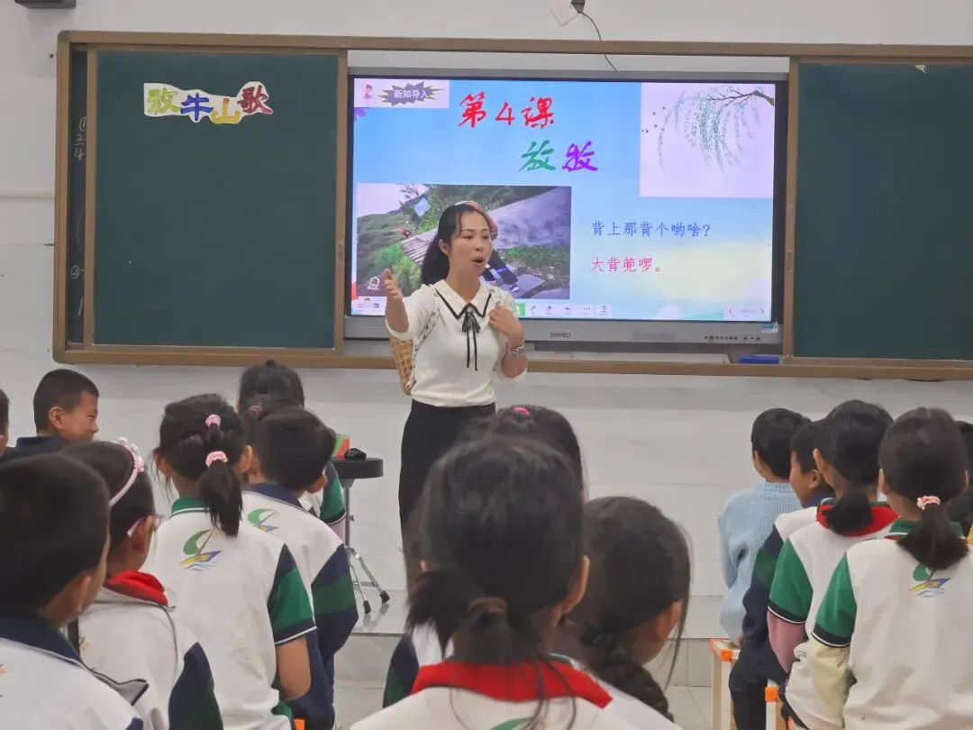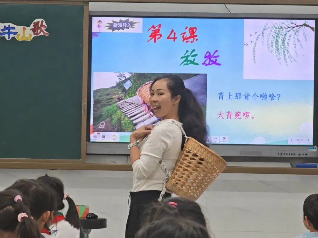 陶富艳老师的《放牛山歌》一课从联系生活实际入手,坚持以美育人、重视艺术体验为教学理念,通过节奏说唱创设情境,多次聆听感知歌曲风格特点,在哼唱旋律中认识二分音符并感知乐句,在歌唱、律动,串铃、双响筒等乐器伴奏中自信、活泼地表现歌曲,在看微视频、聆听多曲山歌片段中丰富对山歌的认识,通过以上层层递进的教学活动,关注学生个性化与多样化的学习需求,旨在培养学生审美感知、艺术表现、创意实践和文化理解的核心素养,最终激发学生对地方民间音乐和对乡村生活的热爱之情。