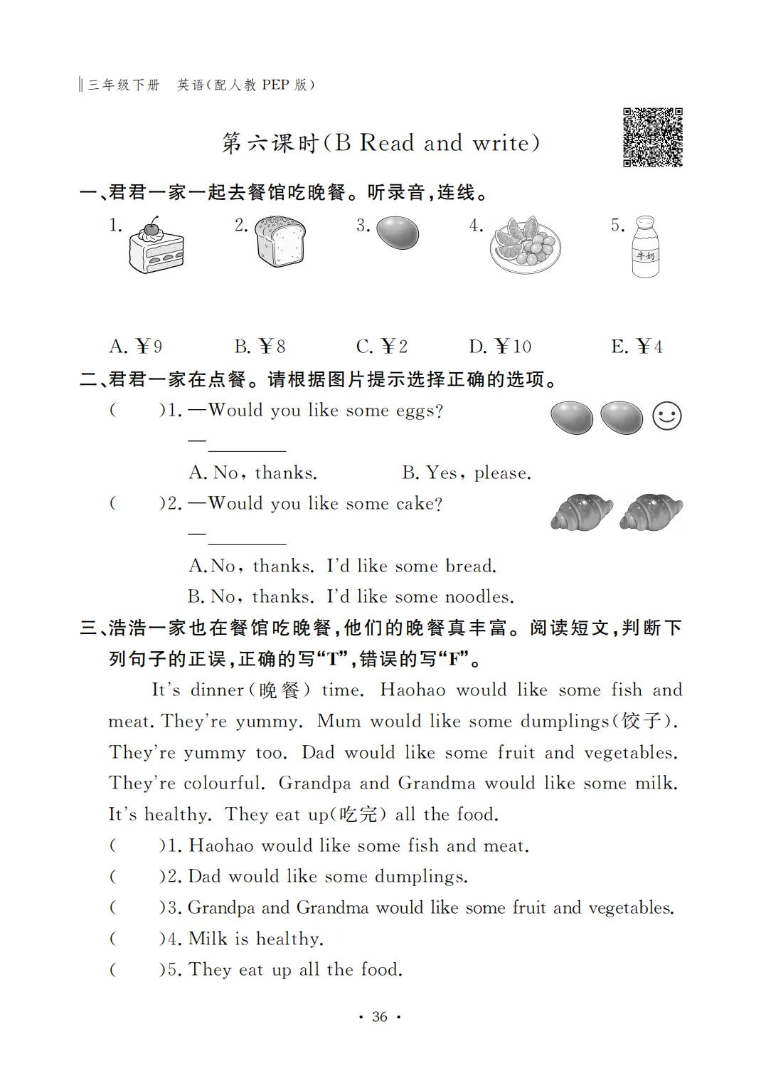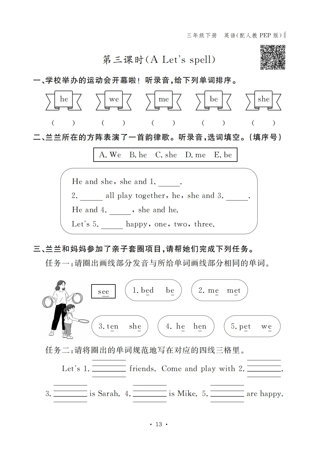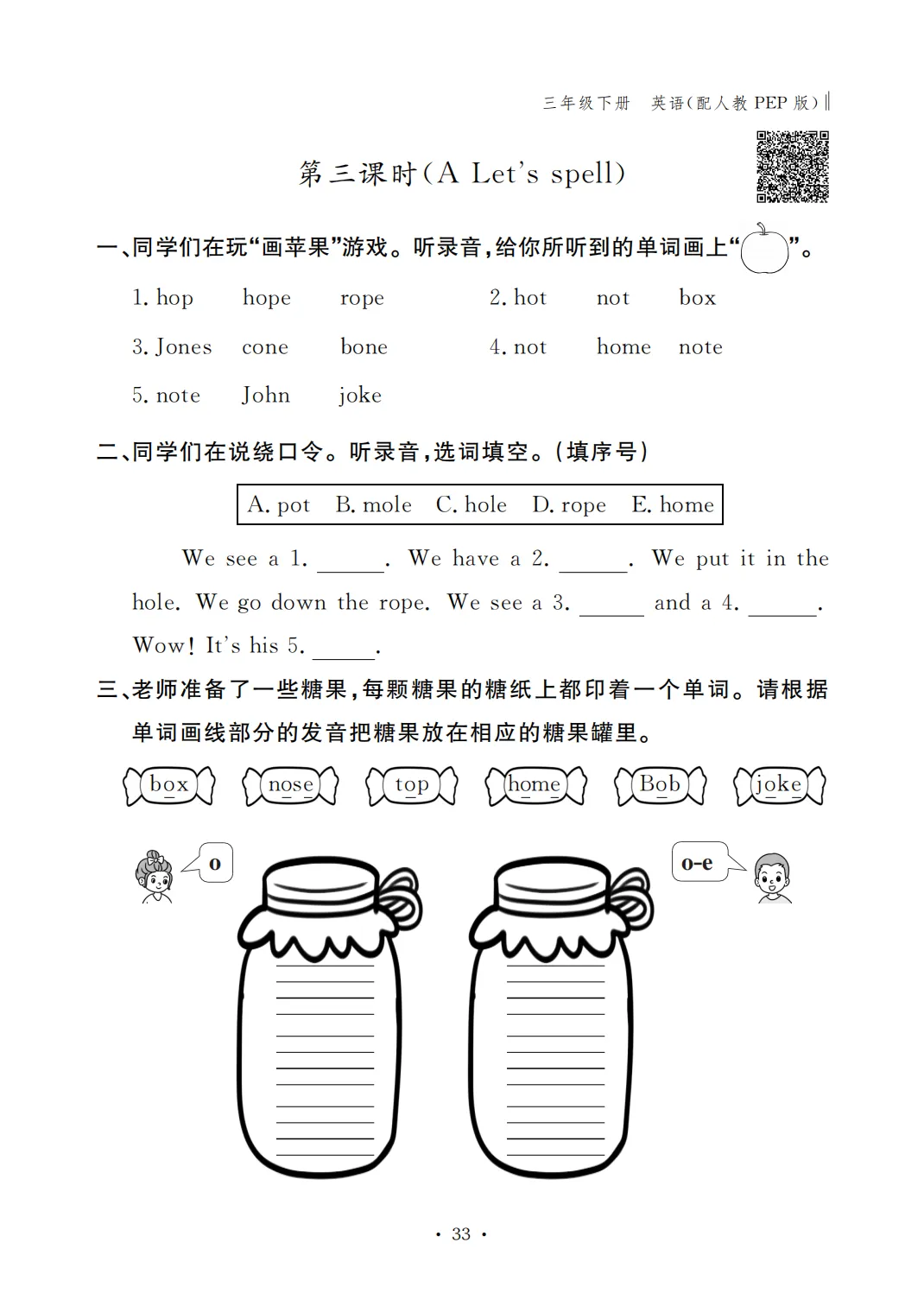 人教PEP版小学英语三年级下册电子课本2026春最新版