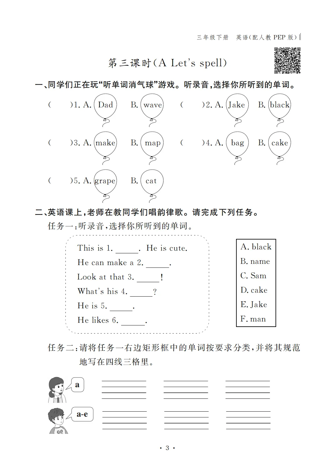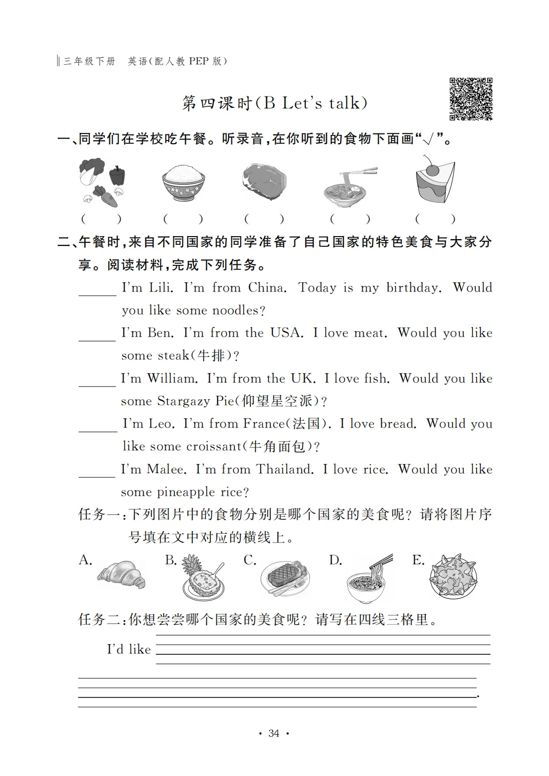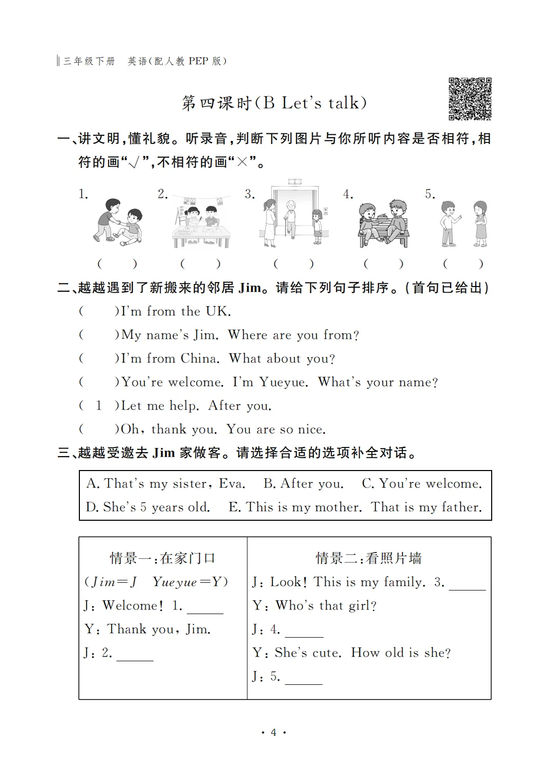 人教PEP版小学英语三年级下册电子课本2026春最新版