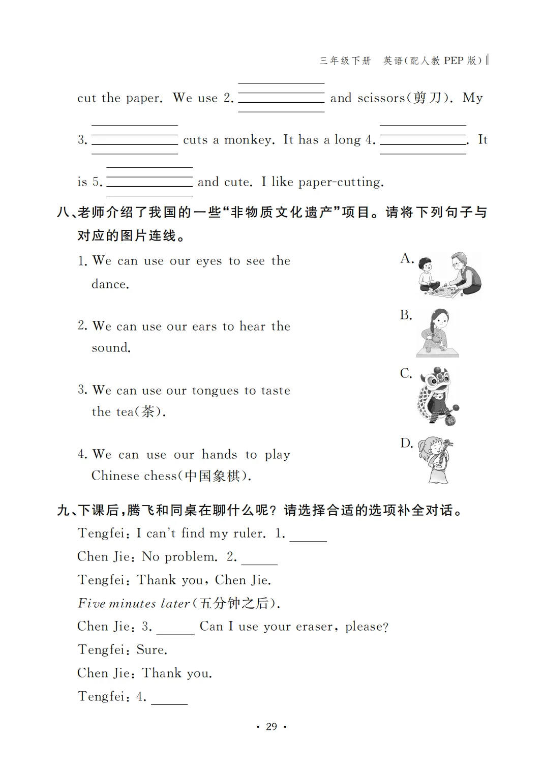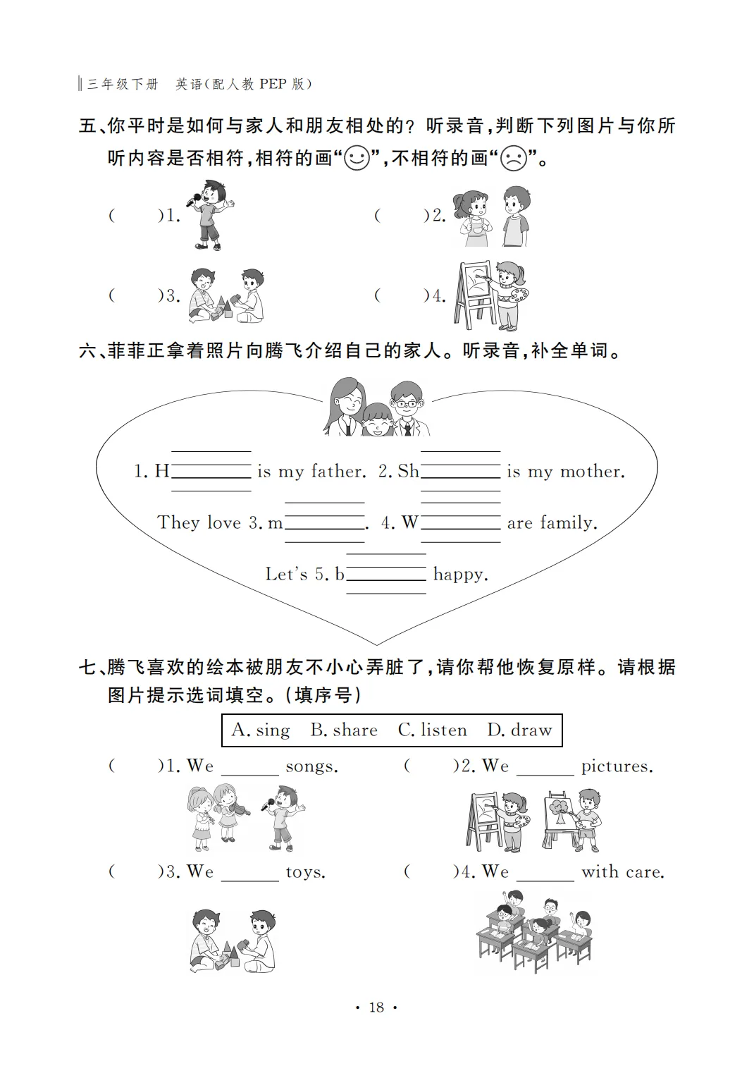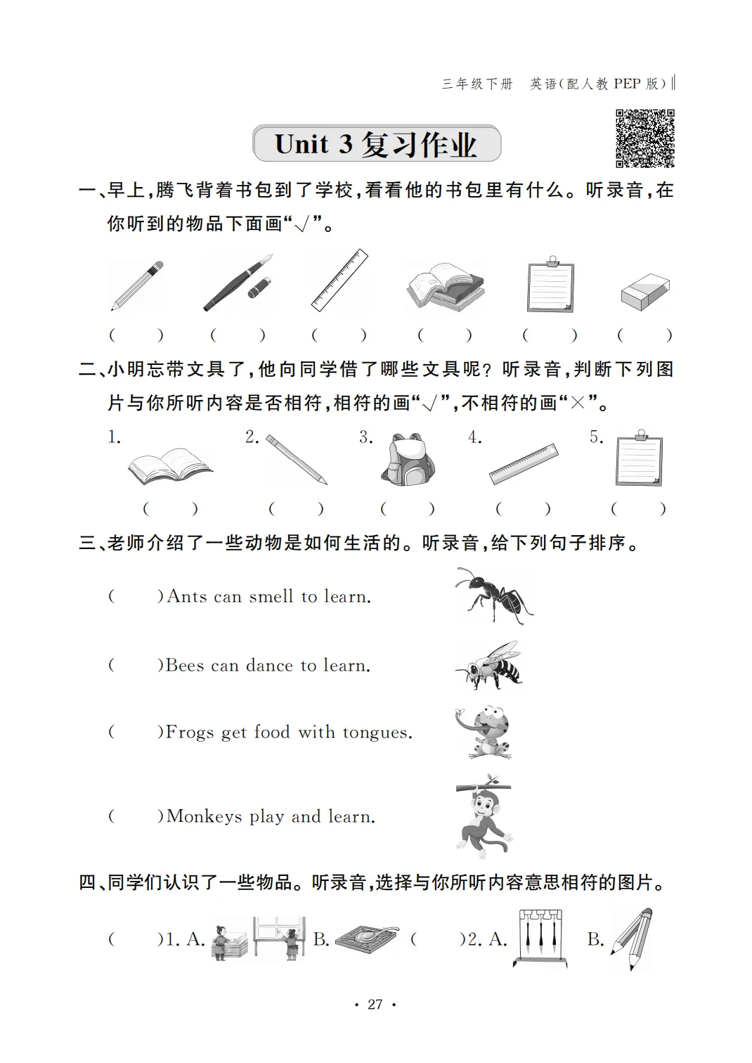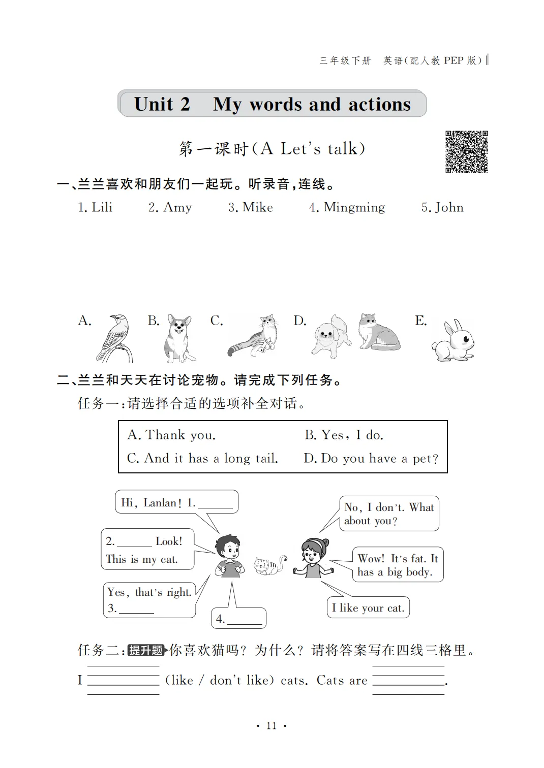 PEP人教版新教材小学英语三年级下册作业本配套听力U2 My words and actions