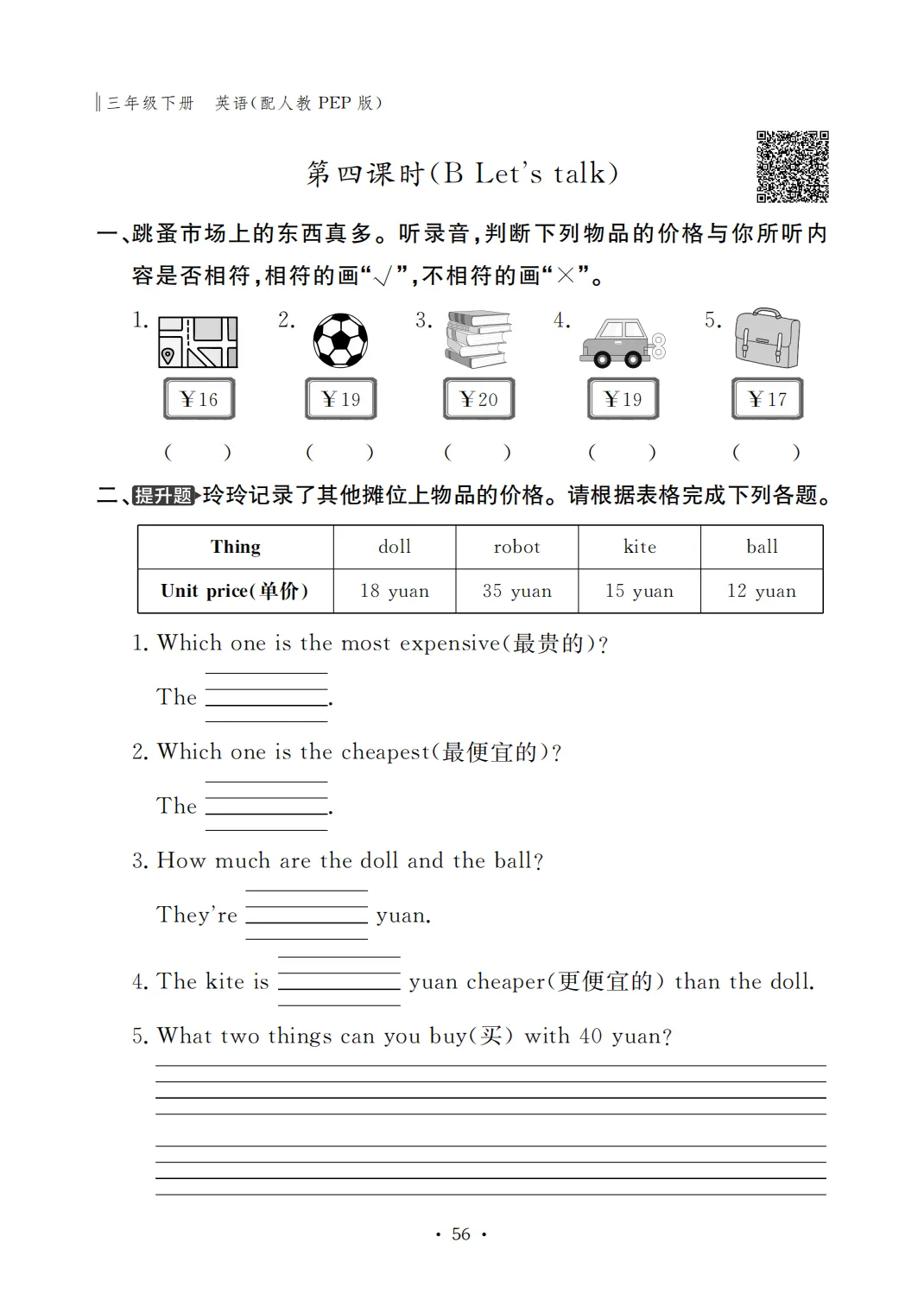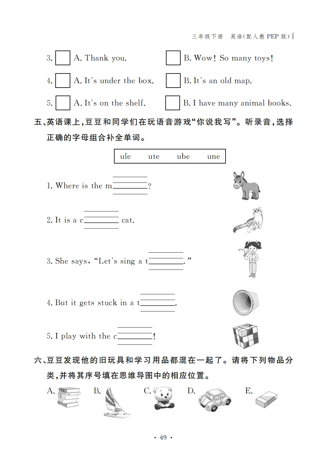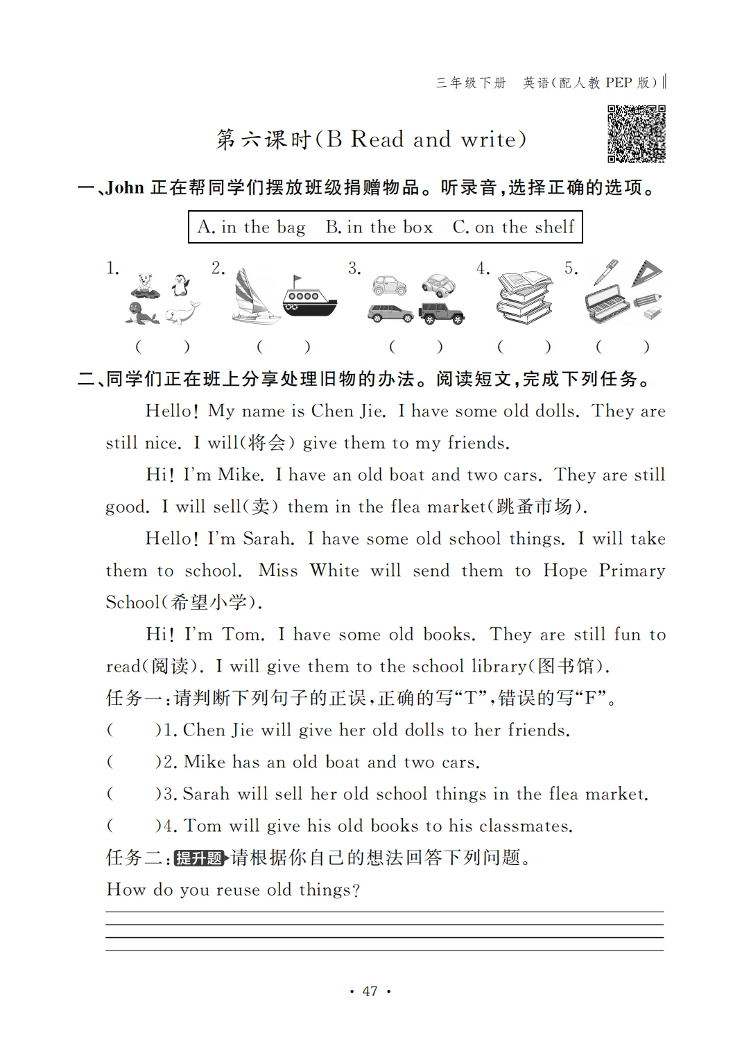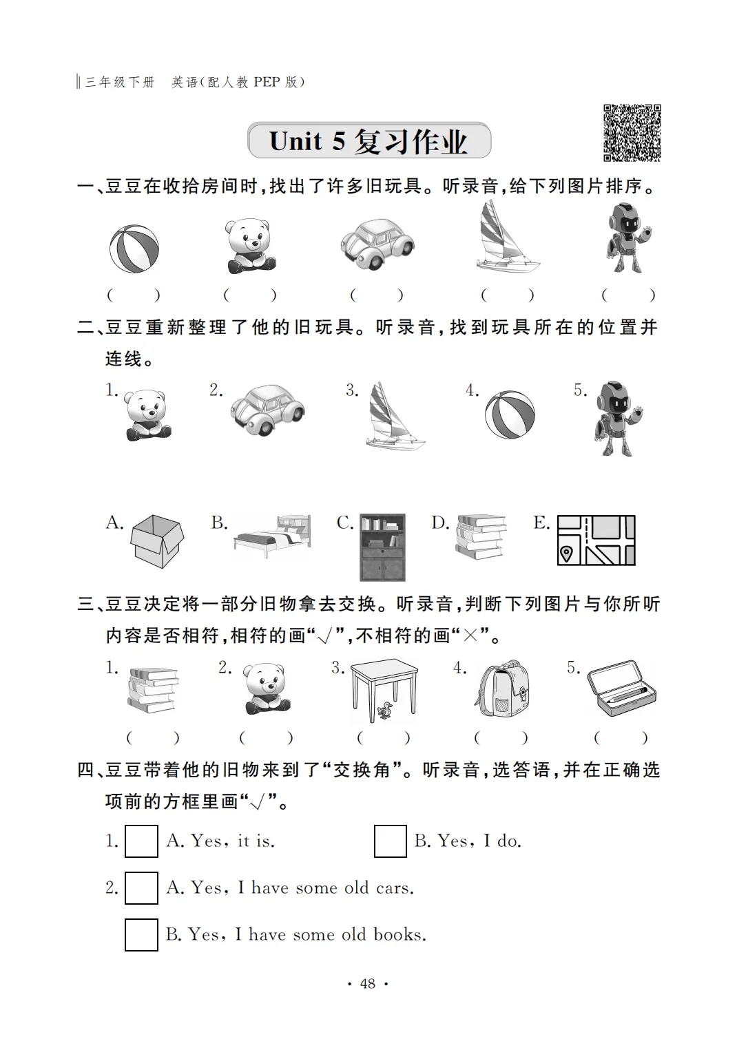 PEP人教版新教材小学英语三年级下册作业本配套听力U5 Old things