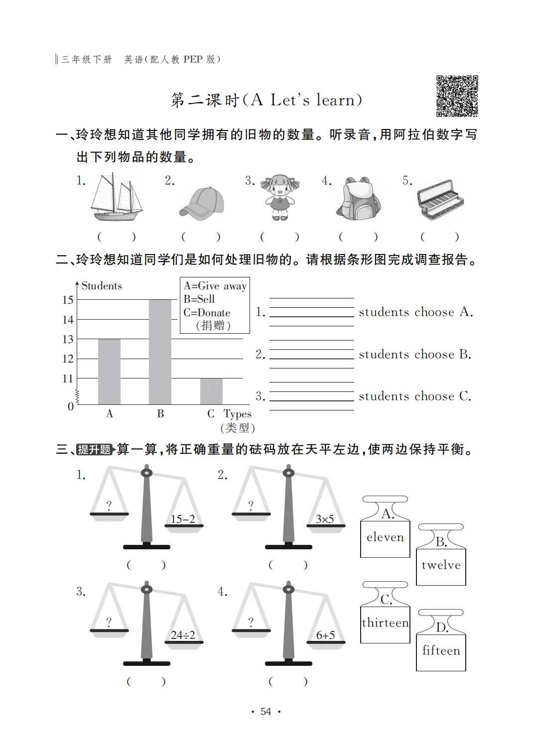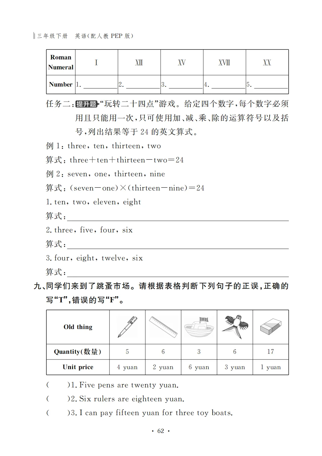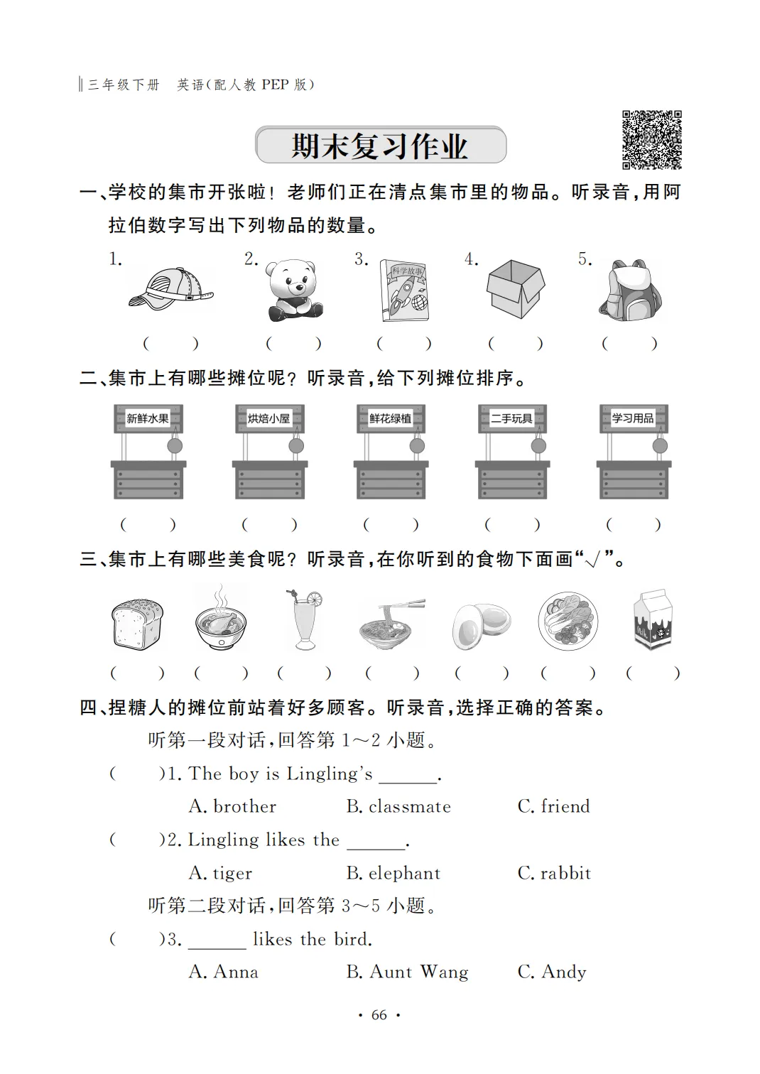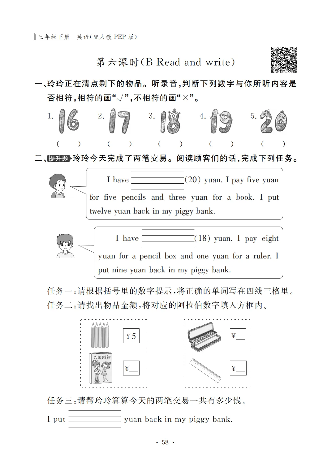 PEP人教版新教材小学英语三年级下册作业本配套听力U6 Numbers in life