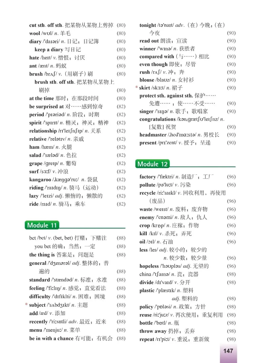 外研社版初中英语九年级上册高频单词30个
