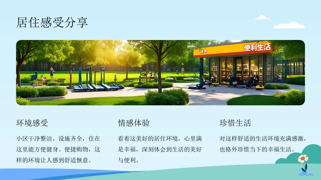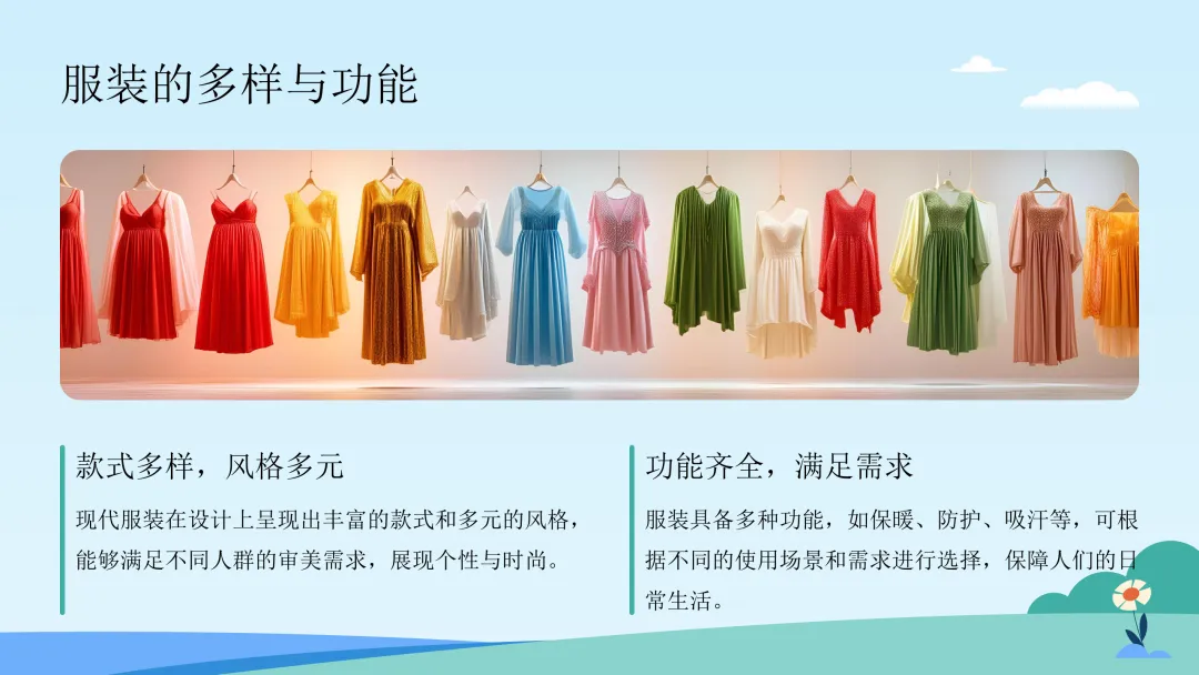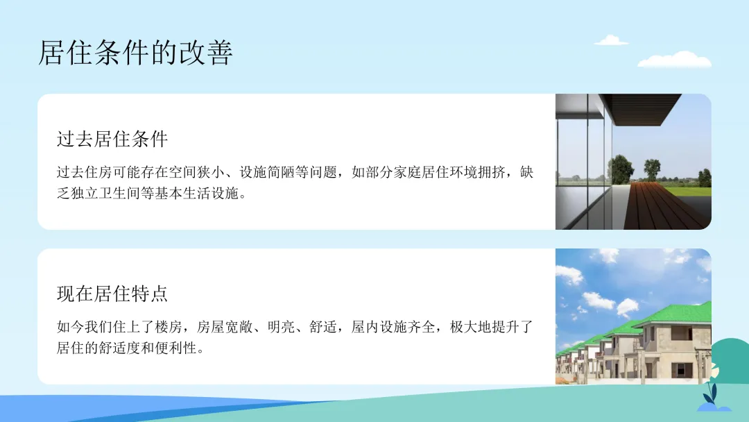 • 多媒体课件:包含不同款式服装、各类食物、新旧住房对比、小区设施等图片、短视频。