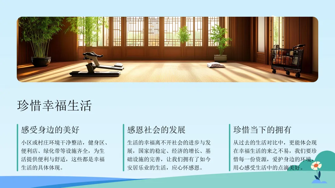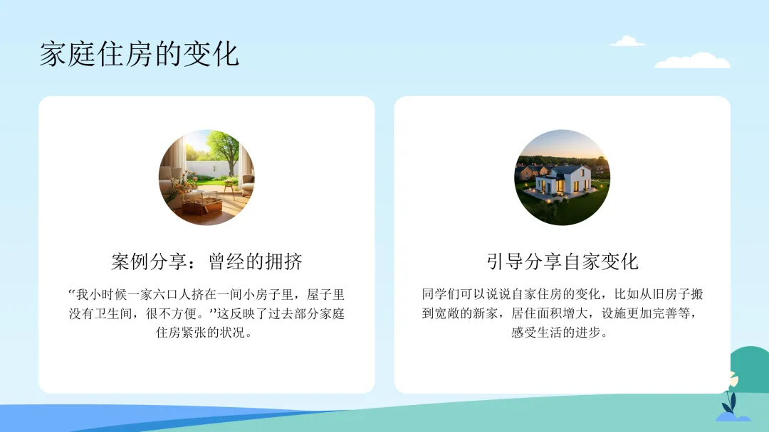 • 难点:理解生活变化背后的社会发展,体会幸福生活的来之不易,学会珍惜并感恩当下的生活。