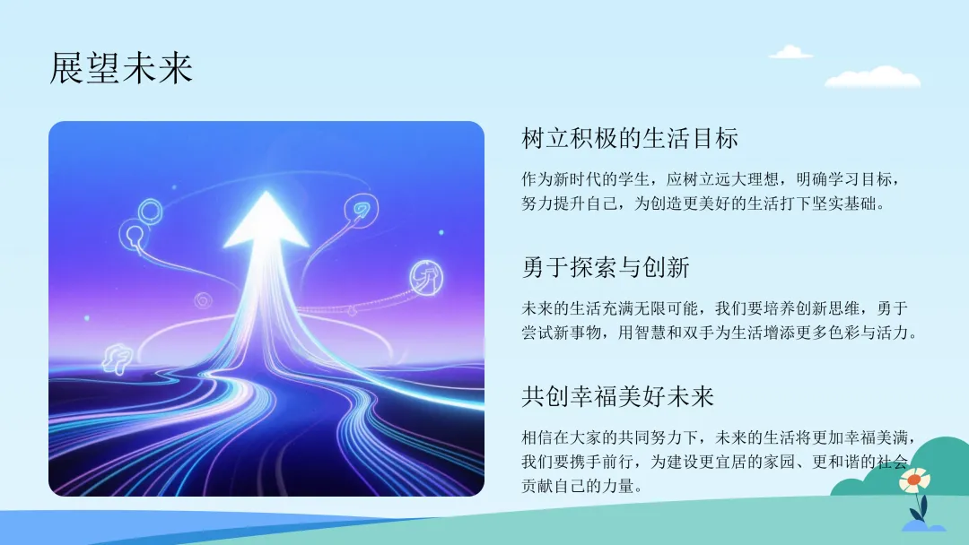 3. 情感态度与价值观:感受生活的幸福与美好,体会社会发展带来的便利,心怀感恩,懂得珍惜当下的幸福生活,树立共创美好未来的意识。