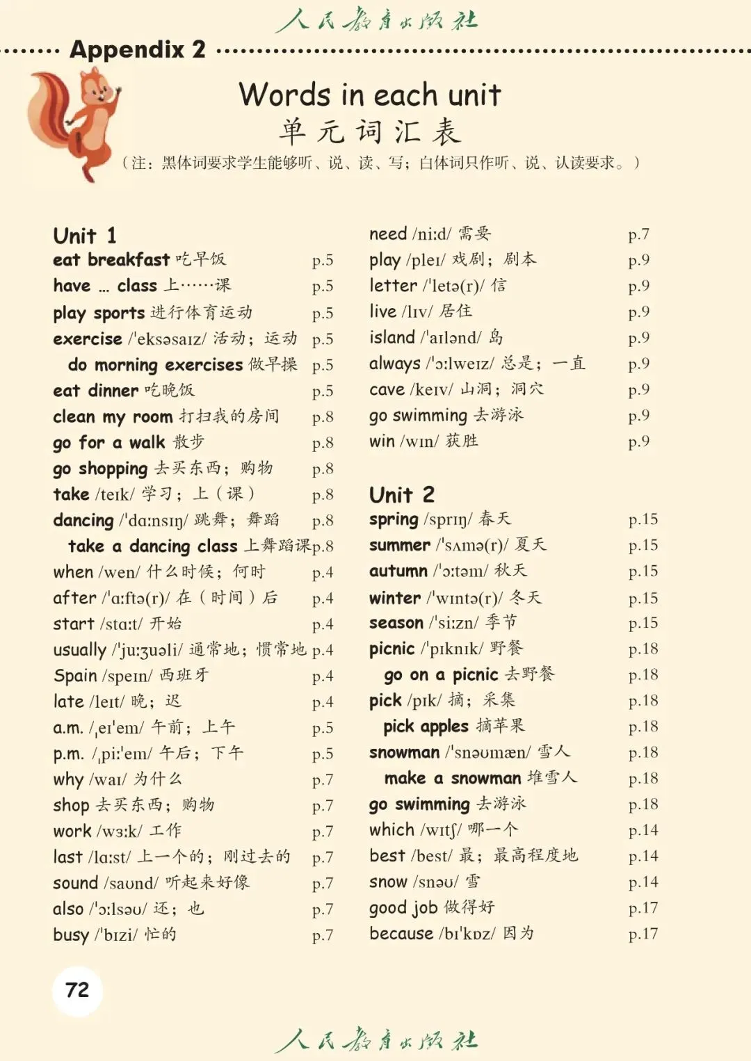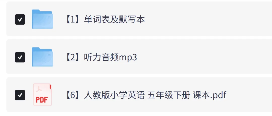 人教版初中英语五年级下册电子课本教材+单词表+单词默写表+听力音频完整版(2026年新版教材),可下载打印!