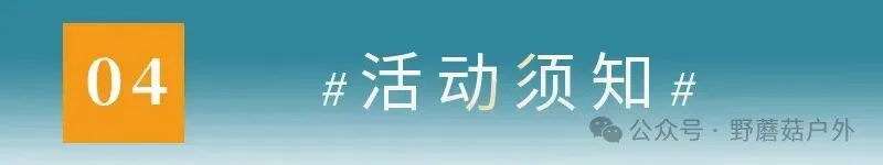2)活动行程时间仅供参考,受天气、交通、客流量、景区或政府调整等影响有可能会发生变化,请以领队实际安排为准;文中照片仅供参考,不做为本次活动要约;户外活动不同于常规旅行活动,报名时未成年人、60周以上老年人、残疾人、孕妇、患者、港澳台和外籍人士报名需报名时说明,领队有挑选队员的权利。