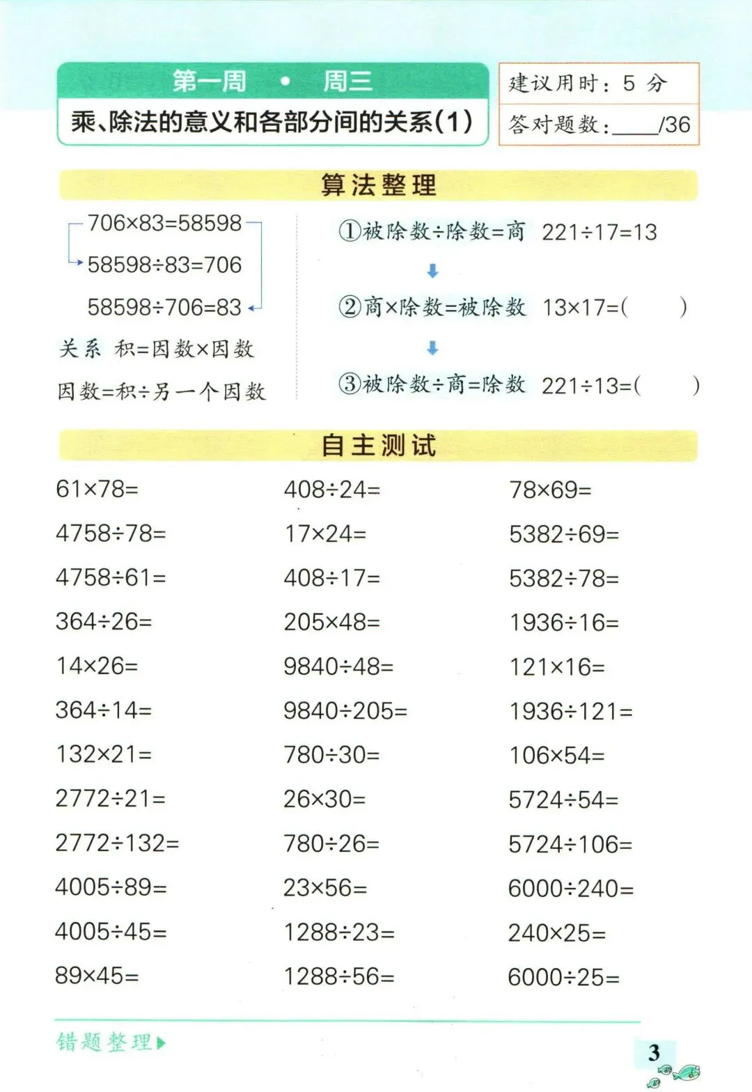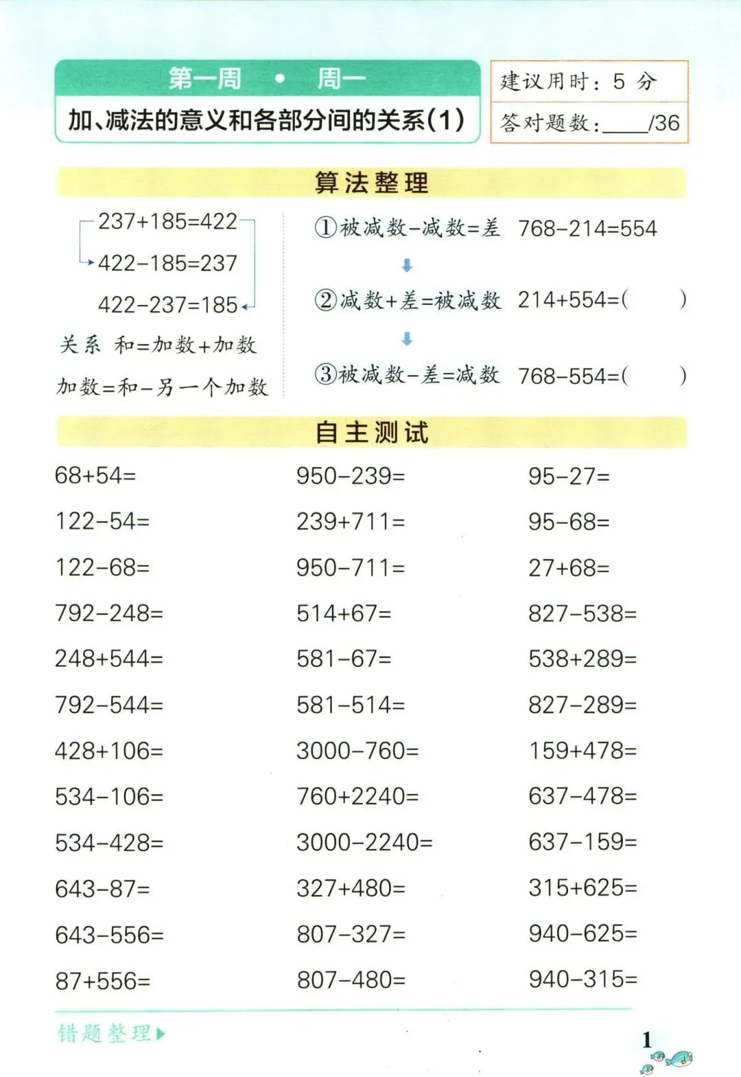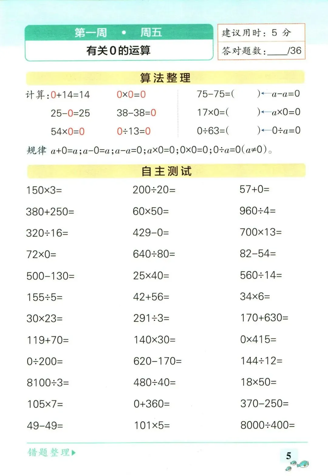 小学学霸天天计算四年级下册人教版-同步教材,电子版可打印