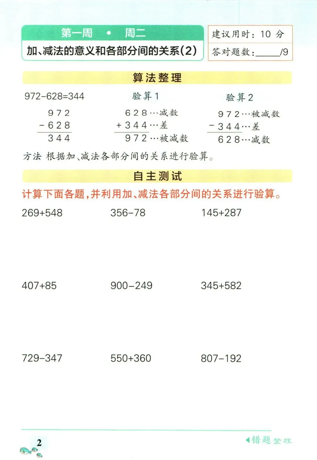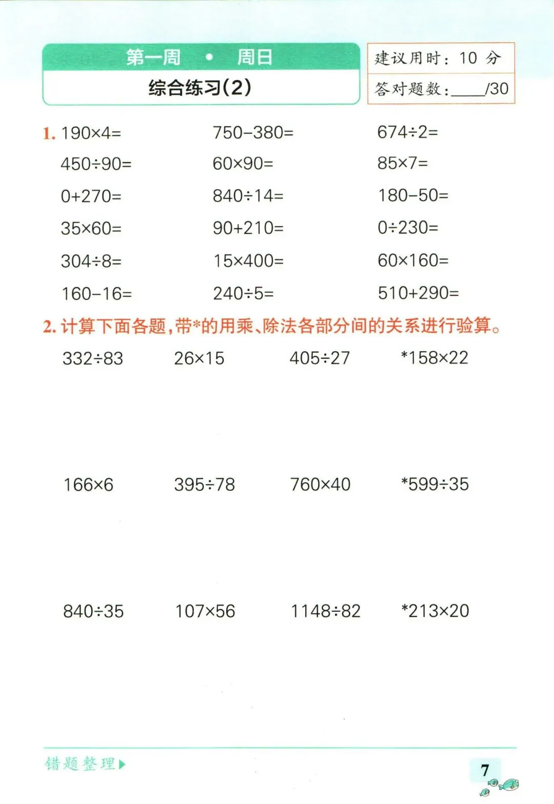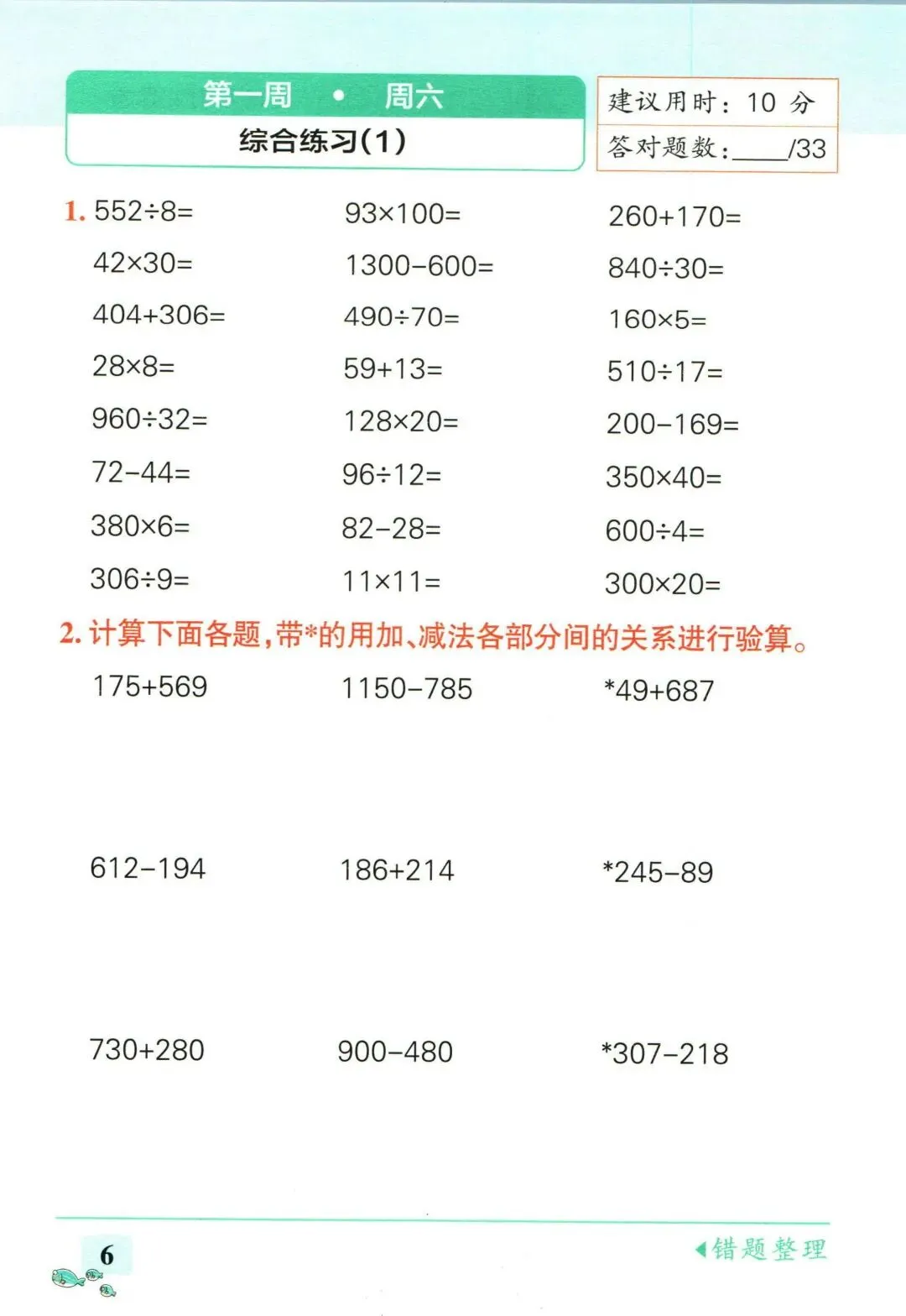 小学学霸天天计算四年级下册人教版-同步教材,电子版可打印