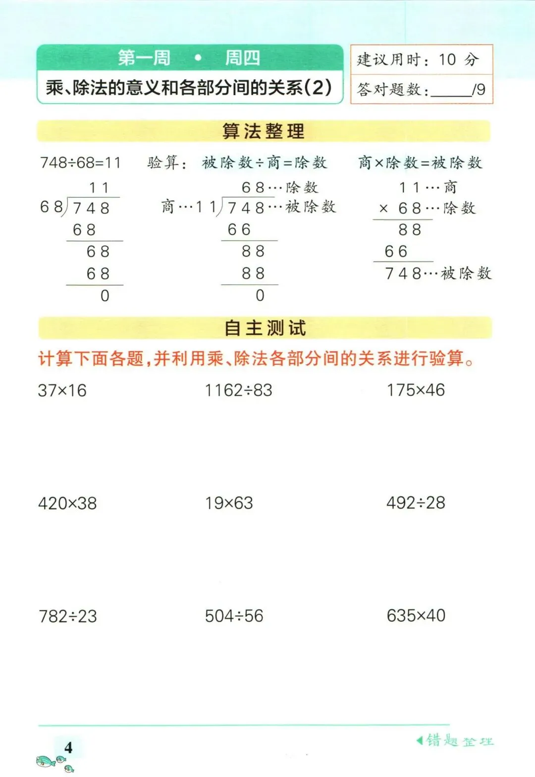 小学学霸天天计算四年级下册人教版-同步教材,电子版可打印同步教程,一天一练每天10分钟,练好数学基本功。含期末复习,综合检测连联系①感谢亲,文末右下角“