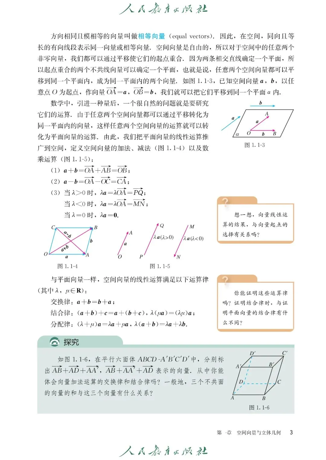【1】第一章 空间向量与立体几何:主要内容包含空间向量的概念与线性运算、空间向量的数量积运算、空间向量的坐标表示、空间线面位置关系的向量判定、空间角与距离的向量求解、空间向量在立体几何中的综合应用
