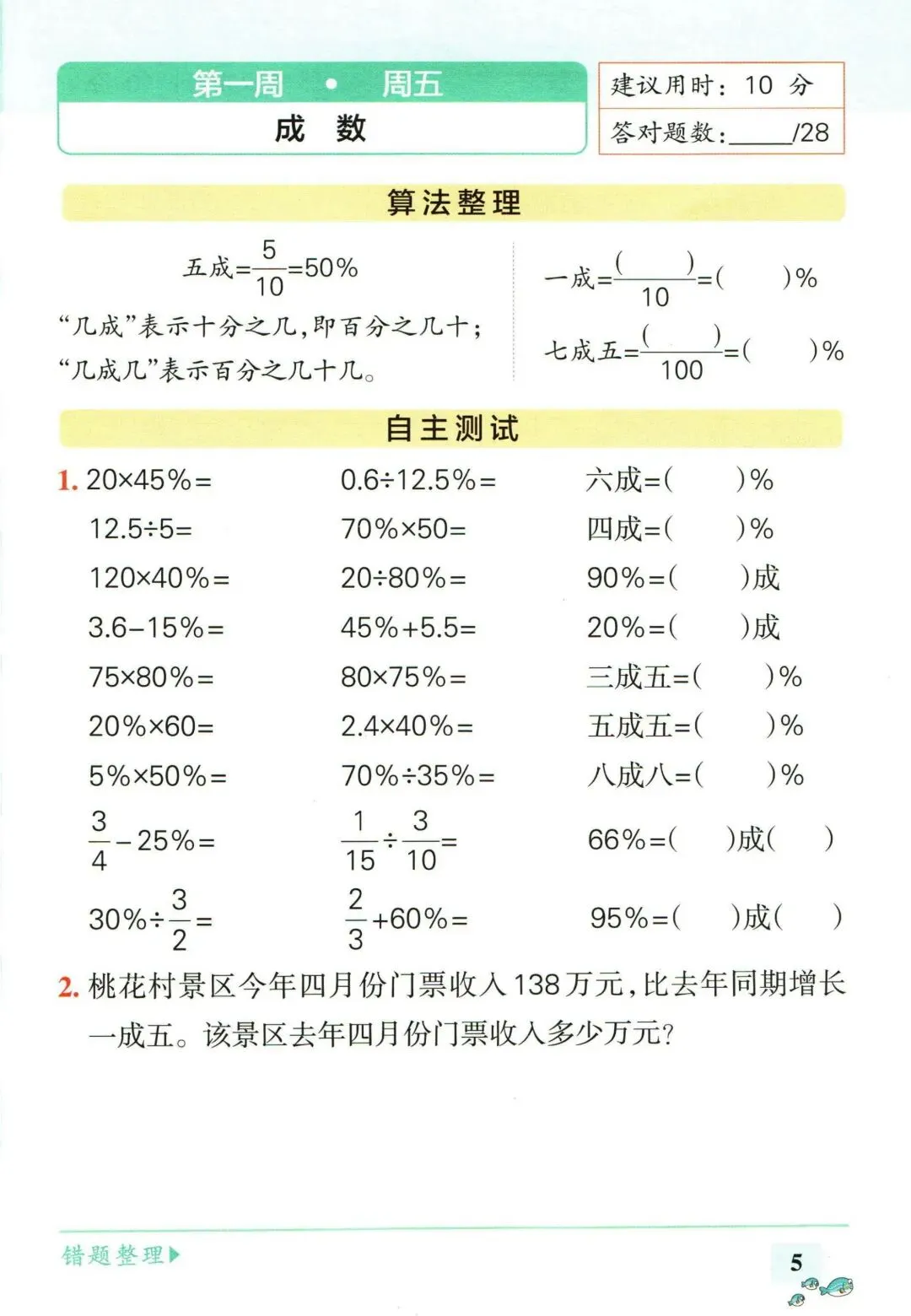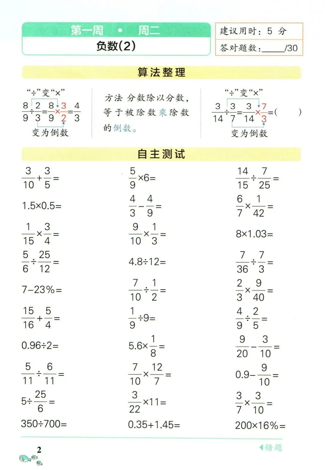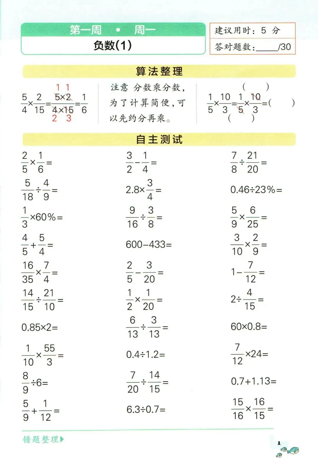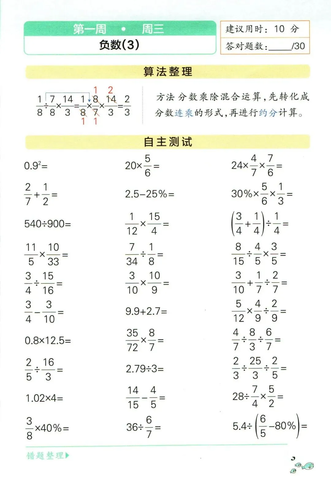 小学学霸天天计算六年级下册人教版-同步教材,电子版可打印