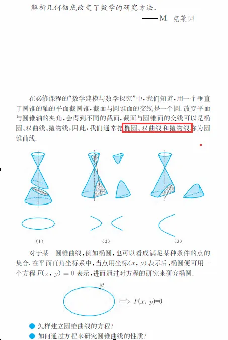 北师大版教材 选择性必修第一册 第二章 圆锥曲线 阅读材料